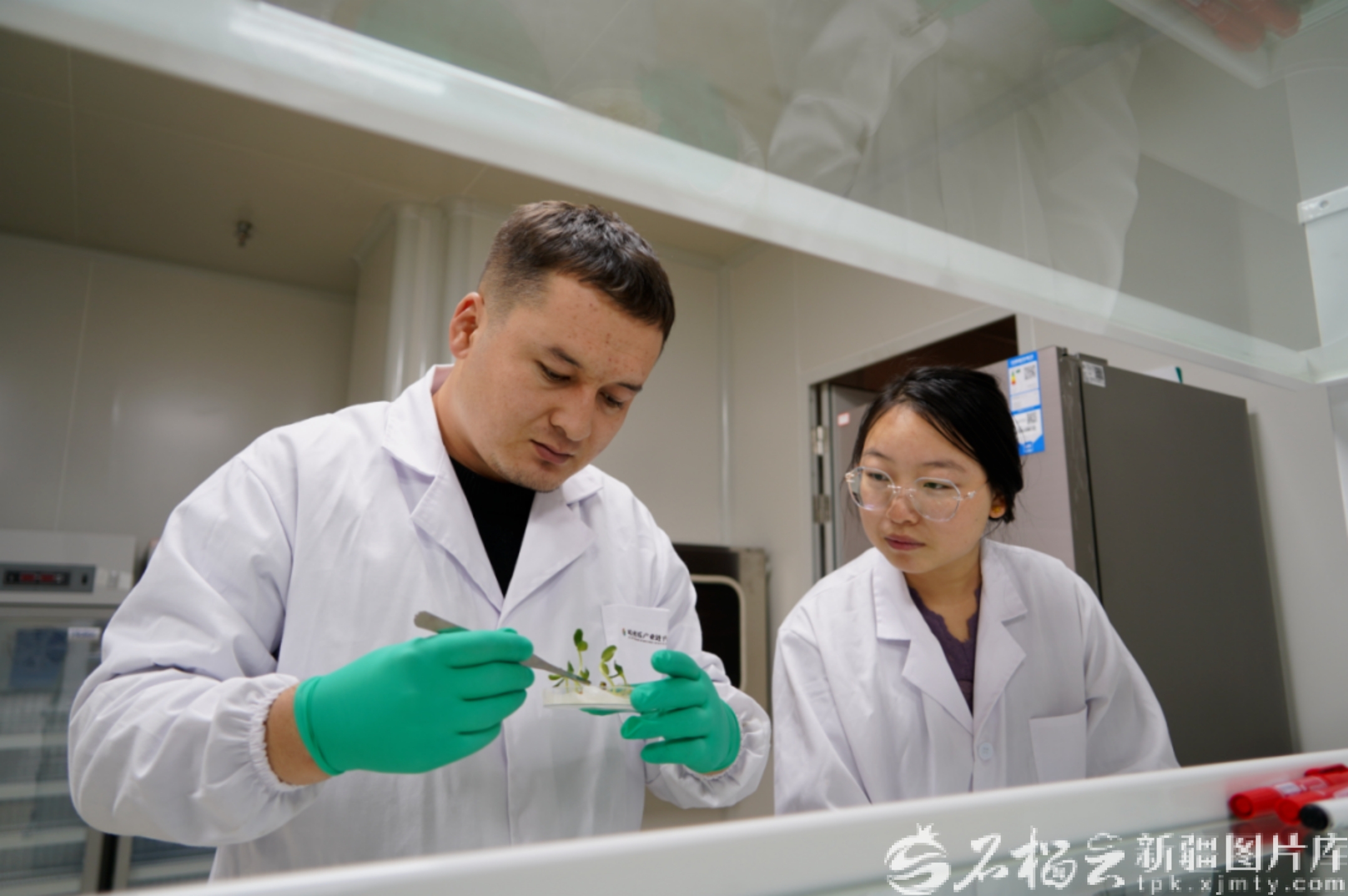 哈密瓜鮮果產(chǎn)業(yè)鏈平臺服務(wù)中心種質(zhì)研發(fā)中心工作人員在進(jìn)行哈密瓜種子活性檢測(資料圖)。楊宏建攝