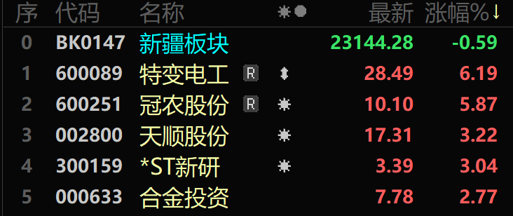 其中,特變電工上漲6.19%,報收28.49元;冠農(nóng)股份上漲5.87%,報收10.10元;天順股份上漲3.22%,報收17.31元;*ST新研上漲3.04%,報收3.39元;合金投資上漲2.77%,報收7.78元。金風(fēng)科技、博納影業(yè)、科力股份、川寧生物、中油資本跌幅居前。
