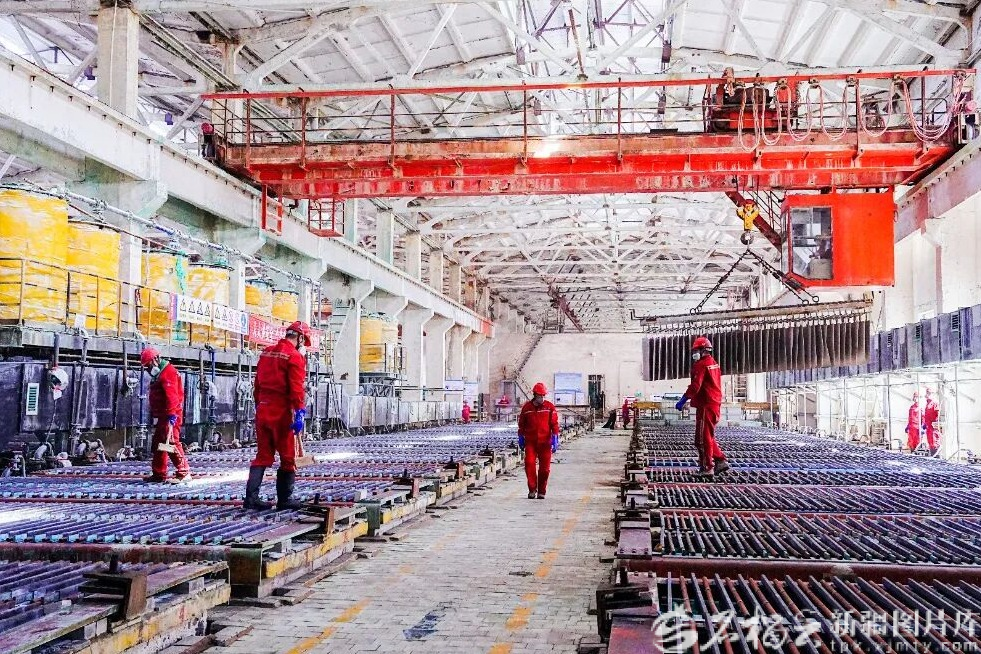 新疆新鑫礦業(yè)股份有限公司阜康冶煉廠生產(chǎn)車間。圖/自治區(qū)國(guó)資委提供