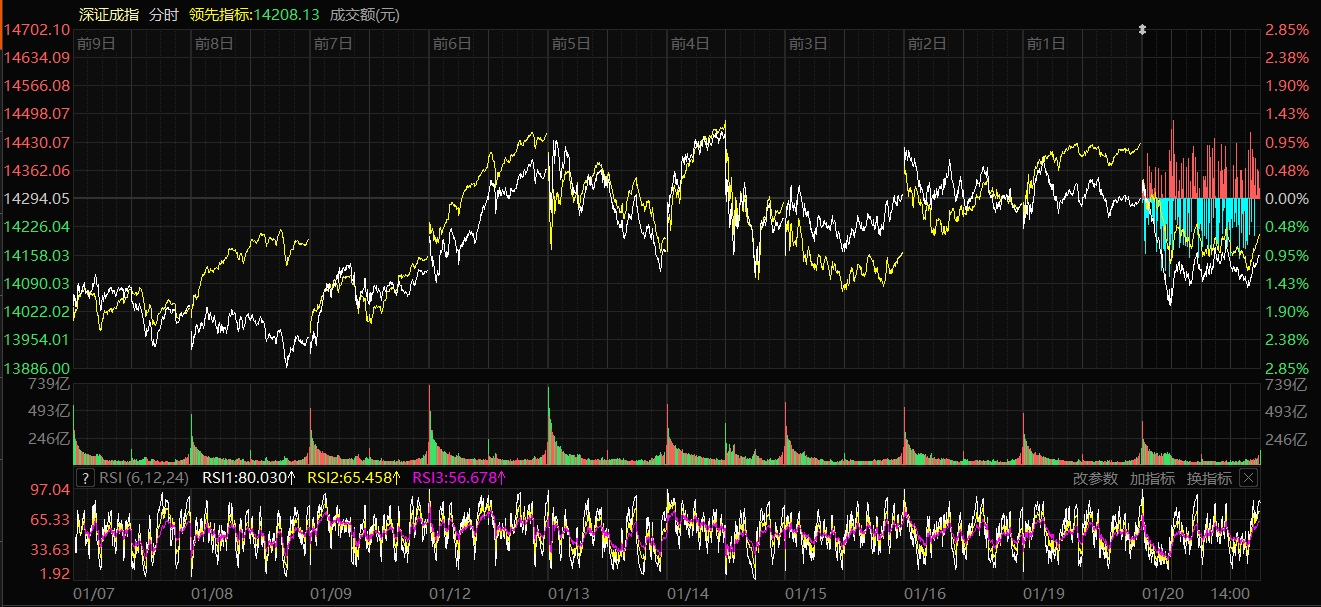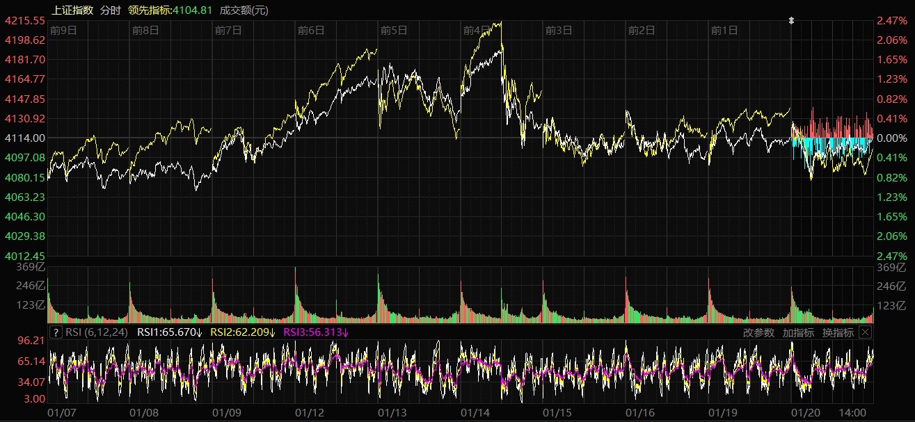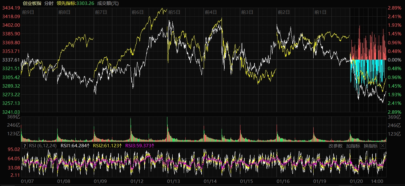 天山網-新疆日報訊(記者趙悅報道)1月20日,A股三大指數(shù)走勢分化,滬指震蕩整理,深證成指與創(chuàng)業(yè)板指走勢較弱。截至收盤,滬指跌0.01%,收報4113.65點;深證成指跌0.97%,收報14155.63點;創(chuàng)業(yè)板指跌1.79%,收報3277.98點。滬深京三市成交額28044億元,較昨日放量720億元。