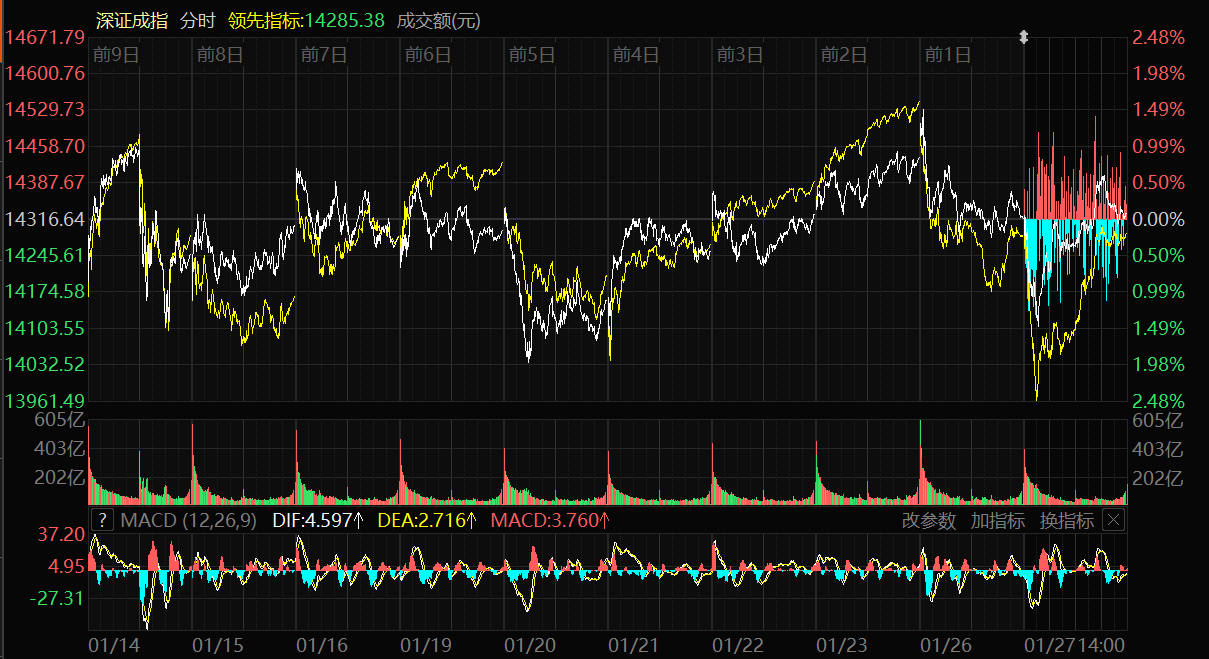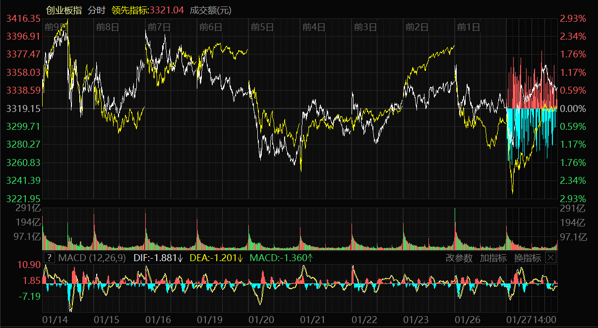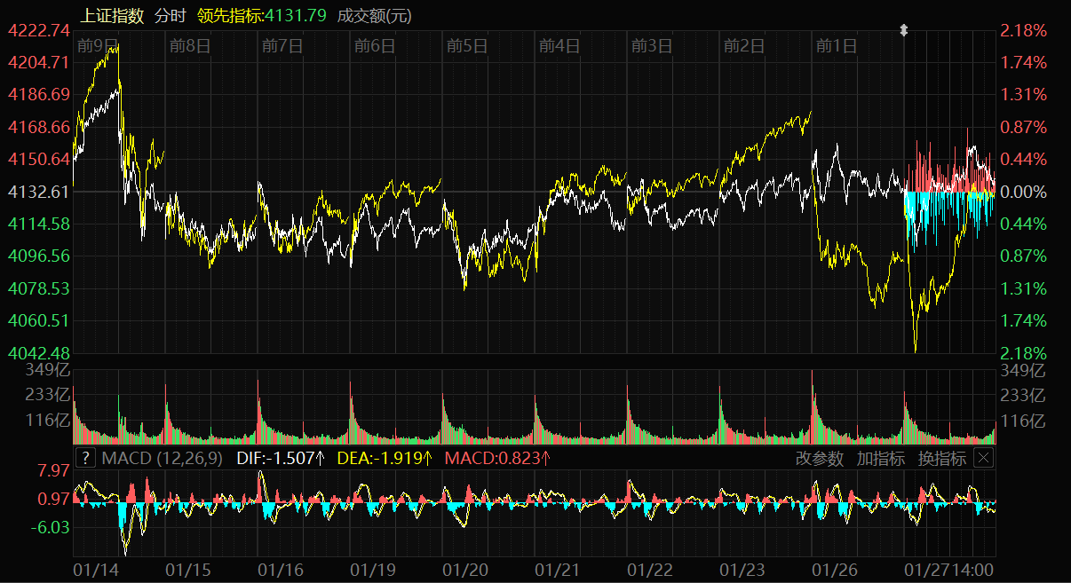 天山網(wǎng)-新疆日報訊(記者冉虎報道)1月27日,A股三大指數(shù)集體上漲。截至收盤,上證指數(shù)漲0.18%,報收4139.90點(diǎn);深證成指漲0.09%,報收14329.91點(diǎn);創(chuàng)業(yè)板指漲0.71%,報收3342.60點(diǎn)。滬深京三市成交額達(dá)29217億元,較昨日縮量3593億元。