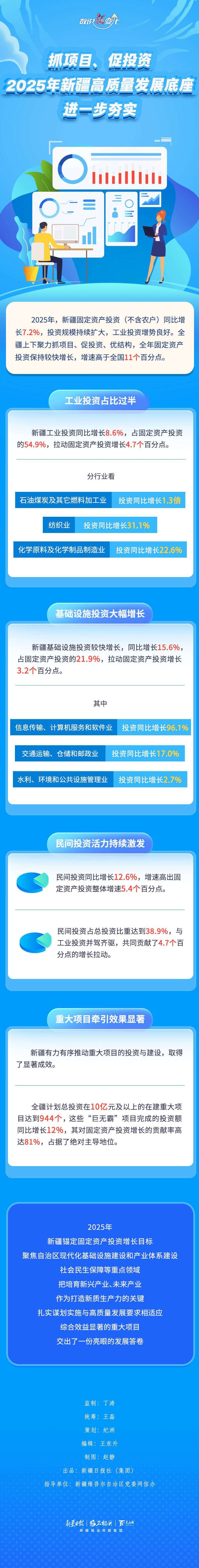 2025年,新疆固定資產(chǎn)投資保持較快增長,增速高于全國11個百分點。這些資金投在了哪些方面?取得了怎樣的成績?今天的《數(shù)說“新”變化》為你一一解答。