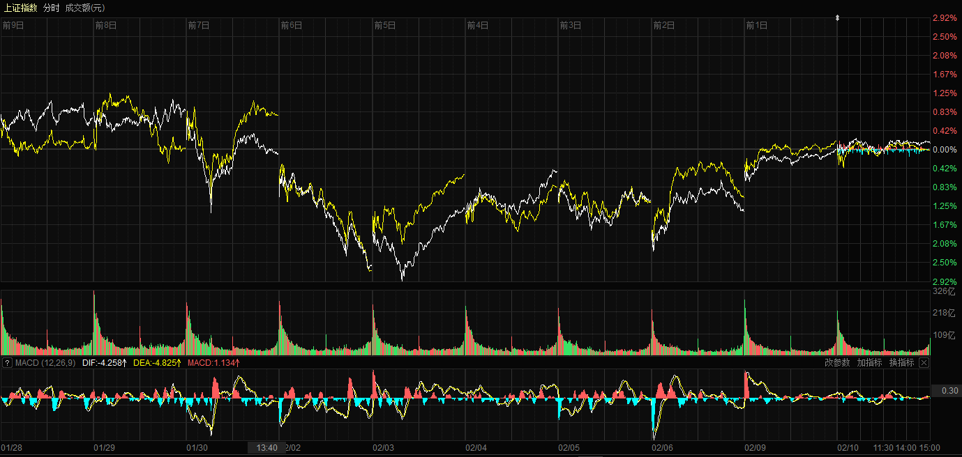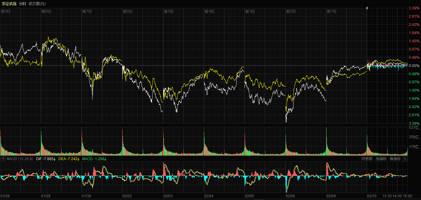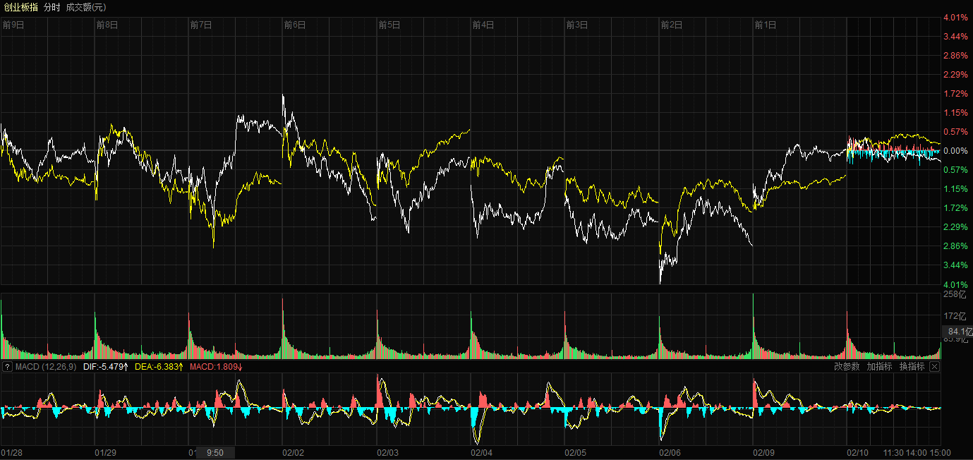 天山網(wǎng)-新疆日報訊(記者康顥嚴報道)2月10日,A股三大指數(shù)震蕩整理,漲跌不一。截至收盤,滬指漲0.13%,報收4128.37點;深證成指漲0.02%,報收14210.63點;創(chuàng)業(yè)板指跌0.37%,報收3320.54點。滬深京三市成交額21249億元,較昨日縮量1455億元。