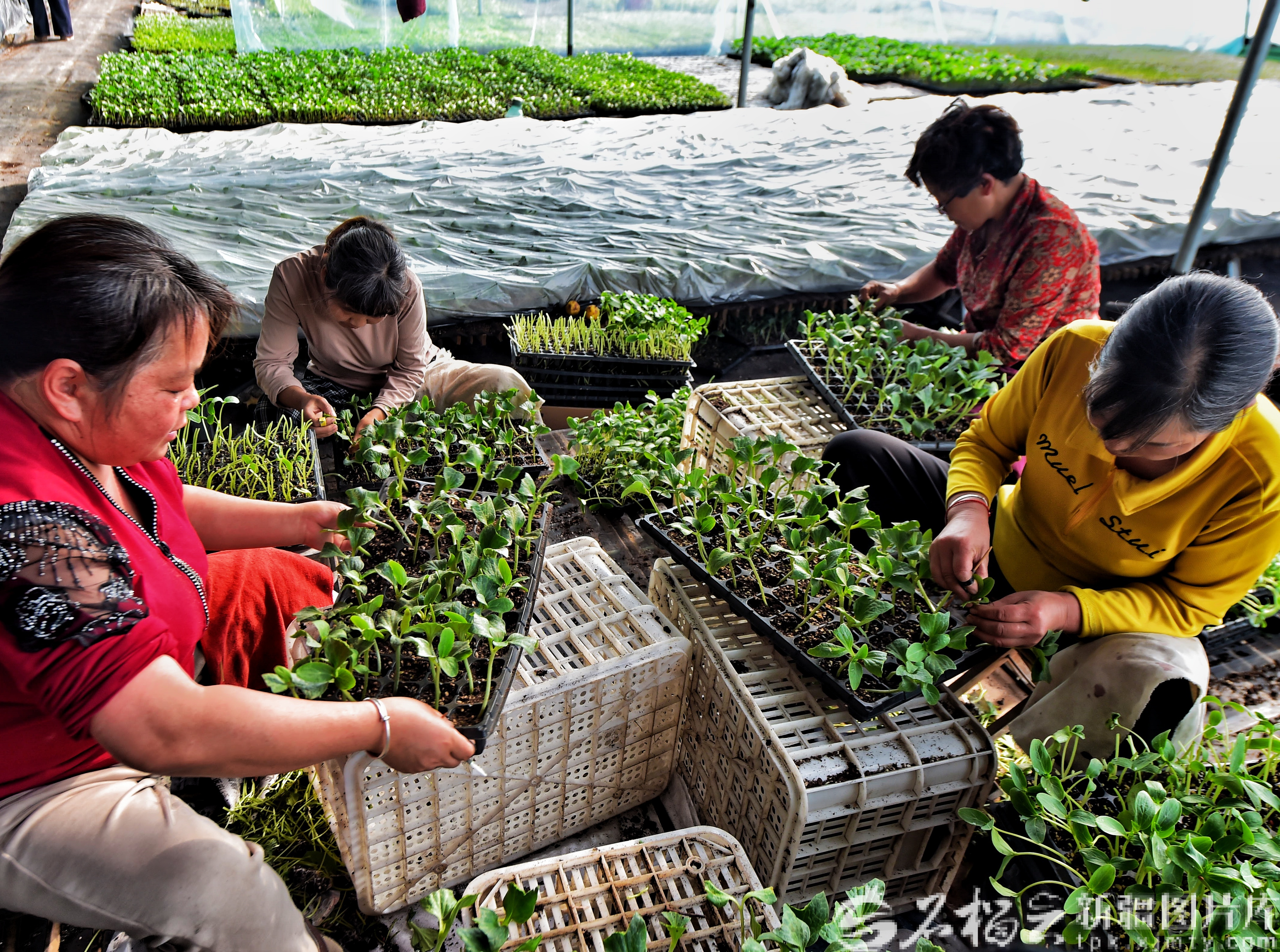 2月10日,庫(kù)爾勒市英下鄉(xiāng)苗圃基地,菜農(nóng)正在打理即將上市的菜苗。