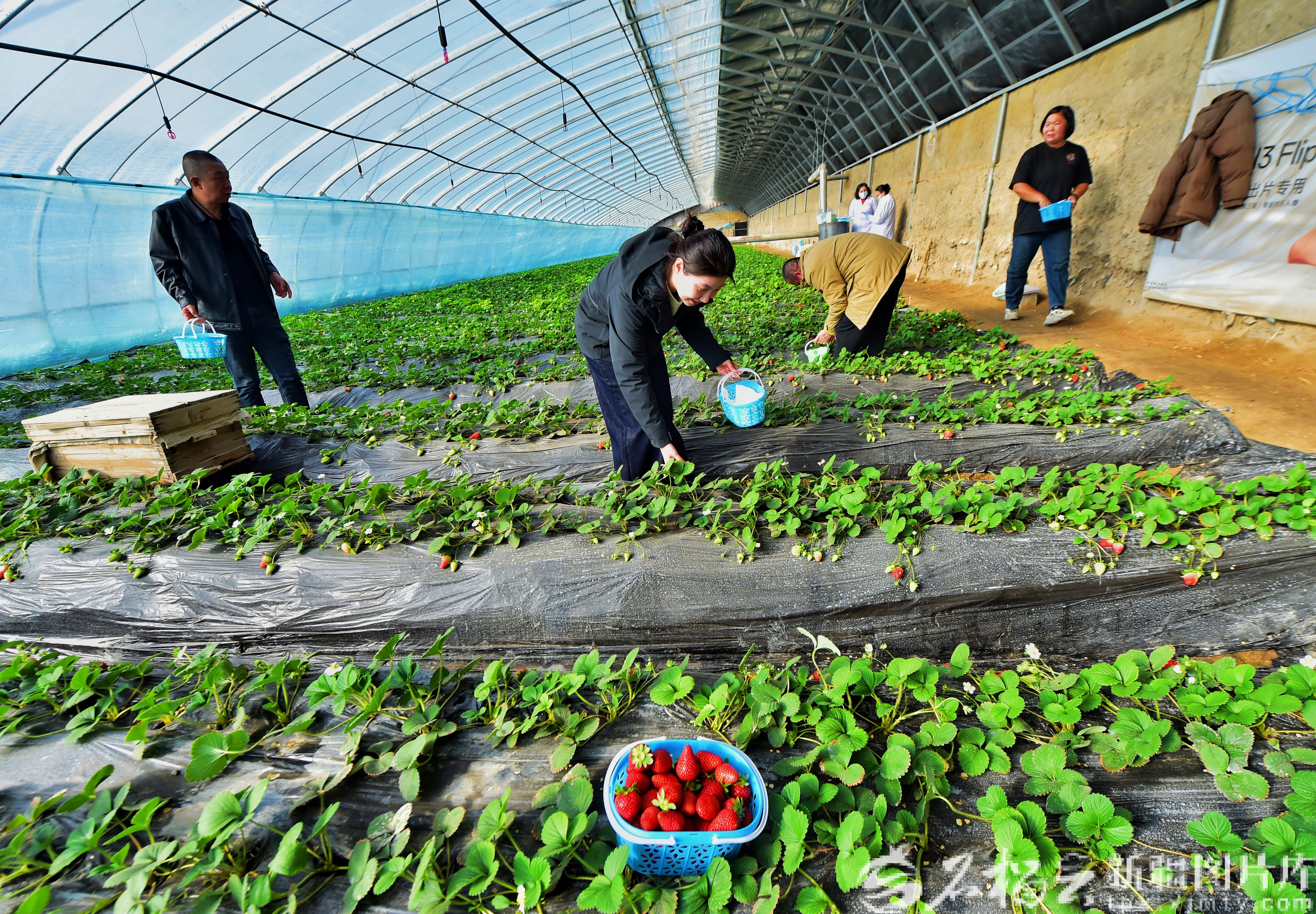 2月10日,游客在英下鄉(xiāng)草莓種植基地采摘草莓。