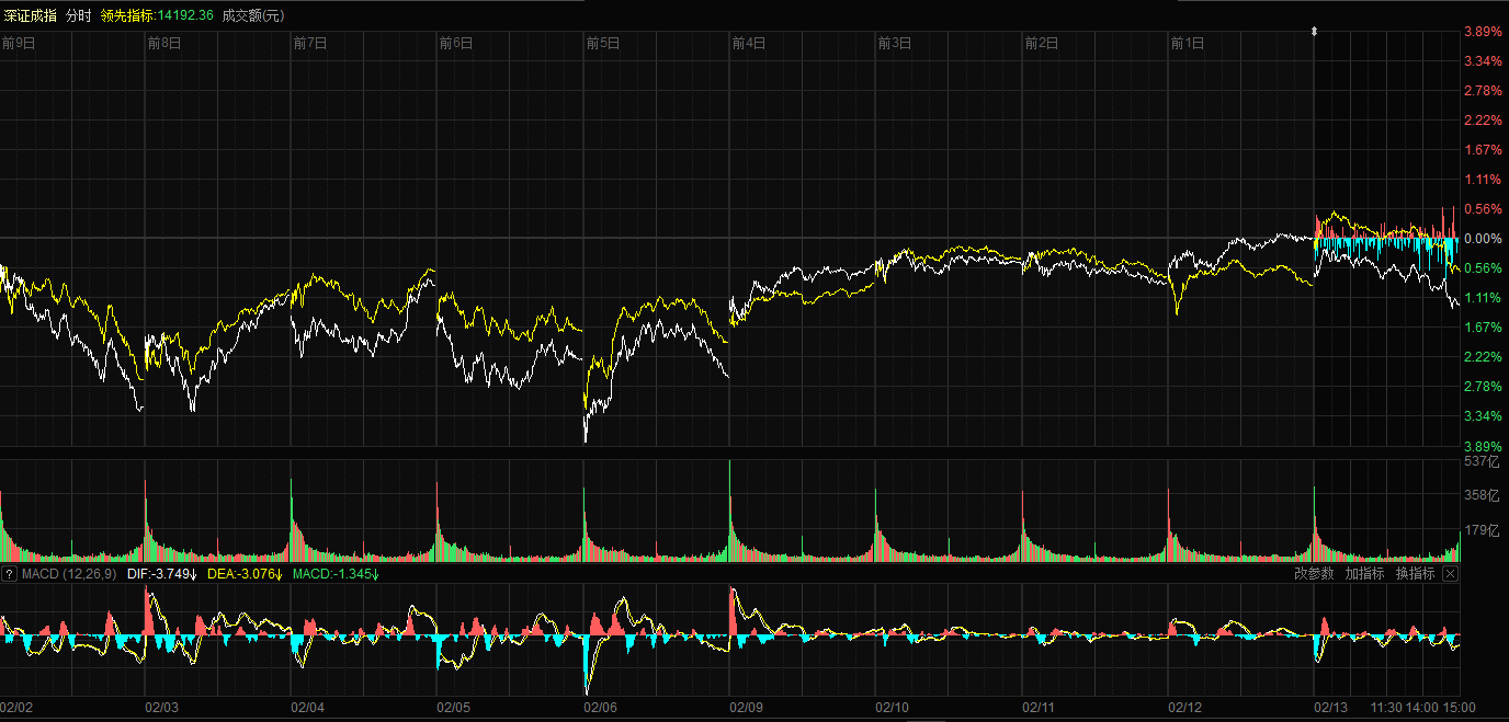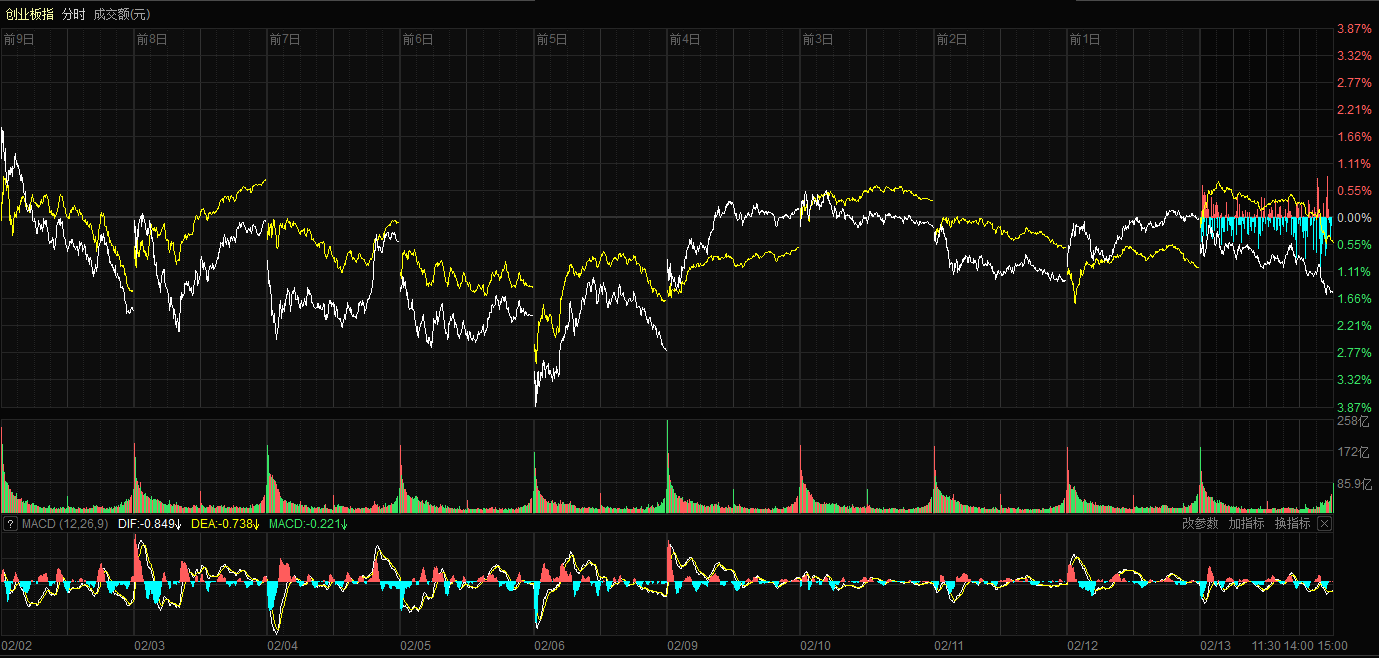天山網(wǎng)-新疆日報訊(記者康顥嚴(yán)報道)2月13日,A股迎來長假前最后一個交易日,三大指數(shù)集體回調(diào)。截至收盤,滬指跌1.26%,報收4082.07點;深證成指跌1.28%,報收14100.19點;創(chuàng)業(yè)板指跌1.57%,報收3275.96點。滬深京三市成交額僅有19991億元,較昨日縮量1619億元。