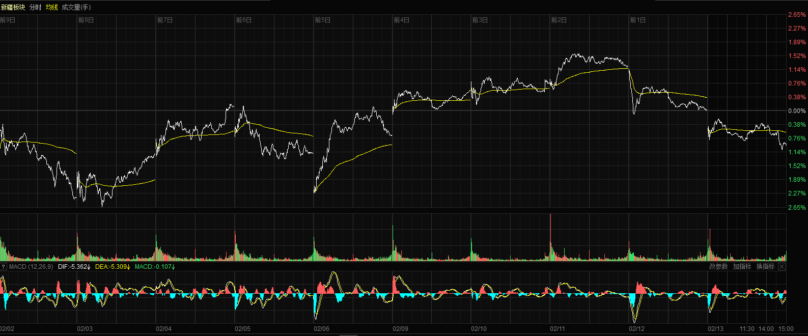 2月13日收盤時,新疆板塊指數(shù)跌0.97%,報收23532.45點,13只股票上漲,49只股票下跌,個股上漲比例為20.97%,總換手率1.83%,總成交額236.66億元。