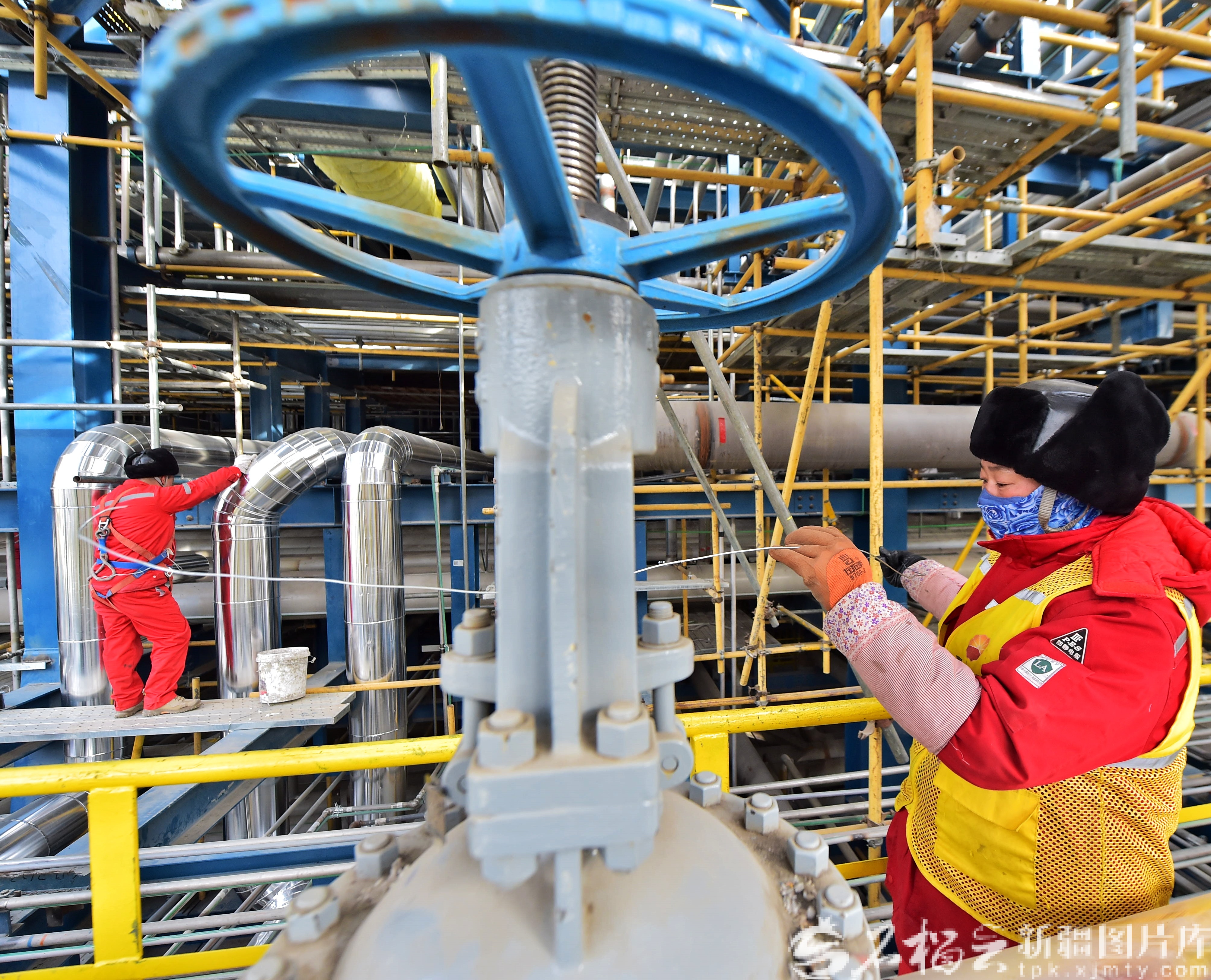 2月19日,獨(dú)山子石化塔里木年產(chǎn)120萬(wàn)噸乙烯二期項(xiàng)目施工現(xiàn)場(chǎng)。