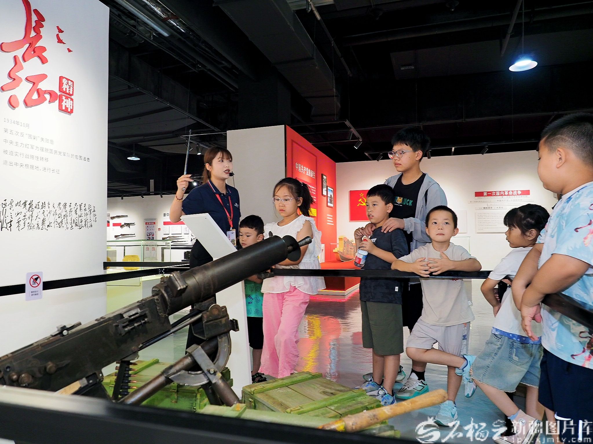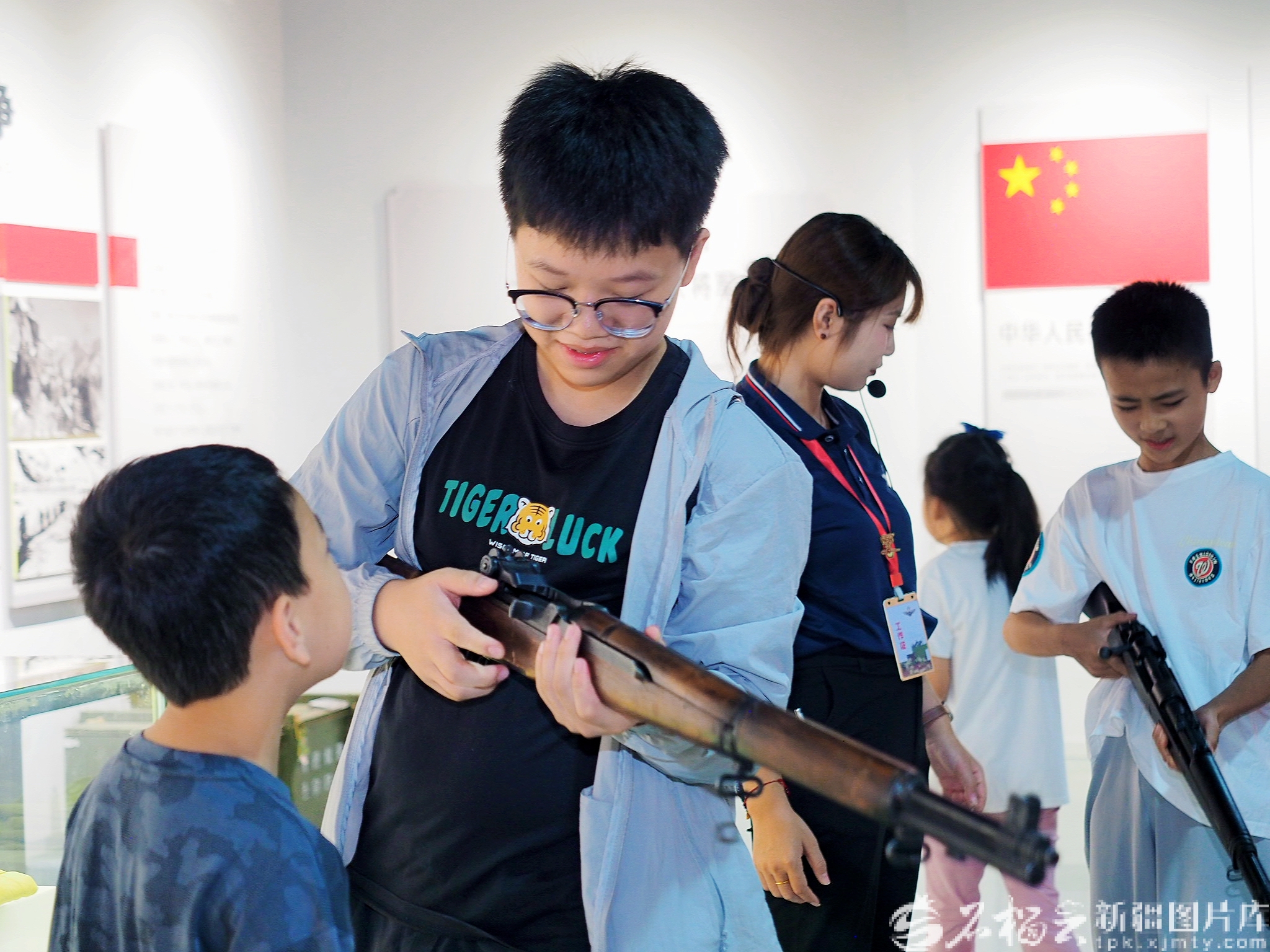 新疆國防軍事陳列館講解員給孩子們講解。 張柯 攝