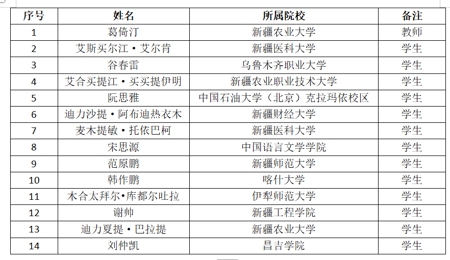 教育部“高校畢業(yè)生基層就業(yè)卓越獎學(xué)(教)金”揭曉 新疆14名師生入選