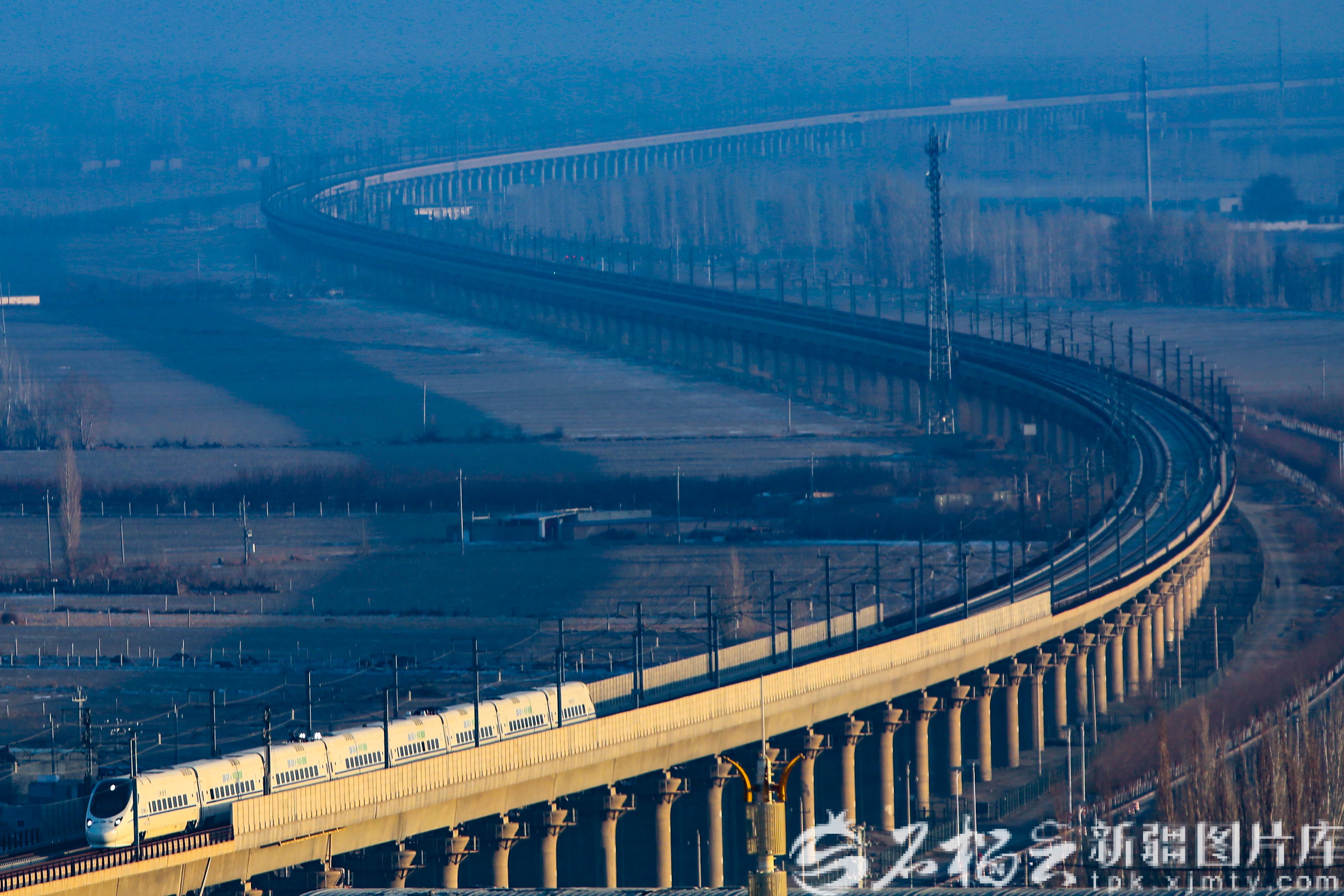 12月26日,一列動(dòng)車(chē)組列車(chē)從蘭新高鐵哈密特大橋駛過(guò)。天山網(wǎng)-新疆日?qǐng)?bào)記者 蔡增樂(lè)攝