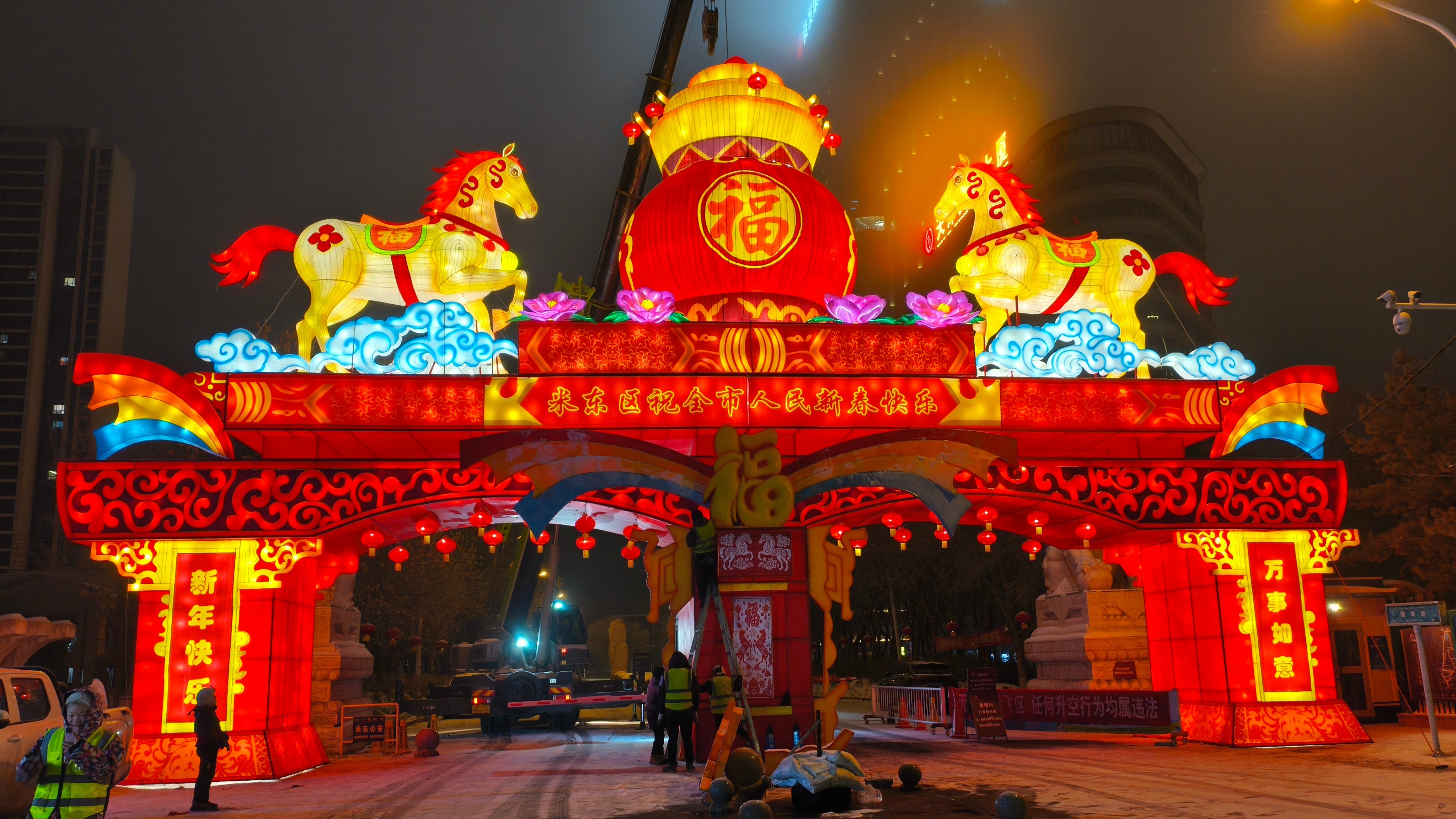 布置花燈、亮化夜景、懸掛燈籠……烏魯木齊街頭年味漸濃