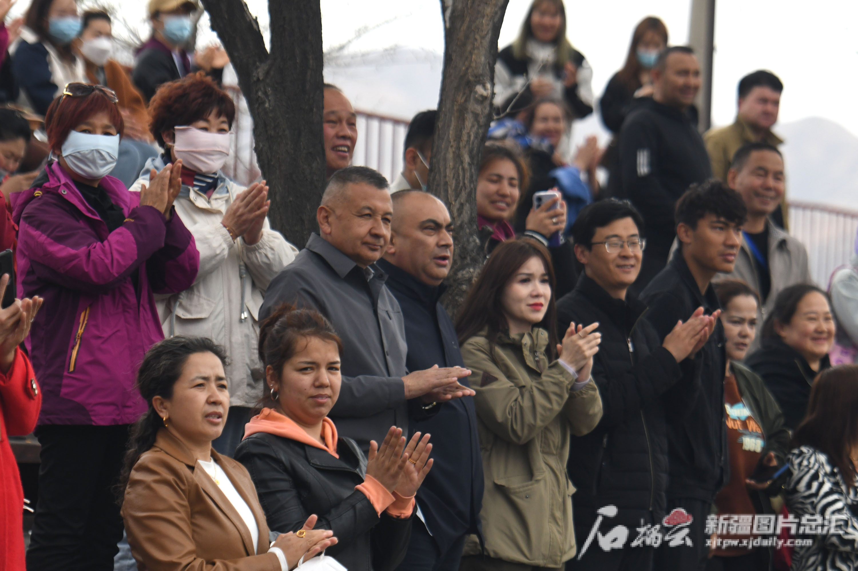 4月25日,在自治區(qū)體育局體育訓練二大隊馬術(shù)訓練場,居民為馬術(shù)表演鼓掌。天山網(wǎng)-新疆日報記者 張新軍攝