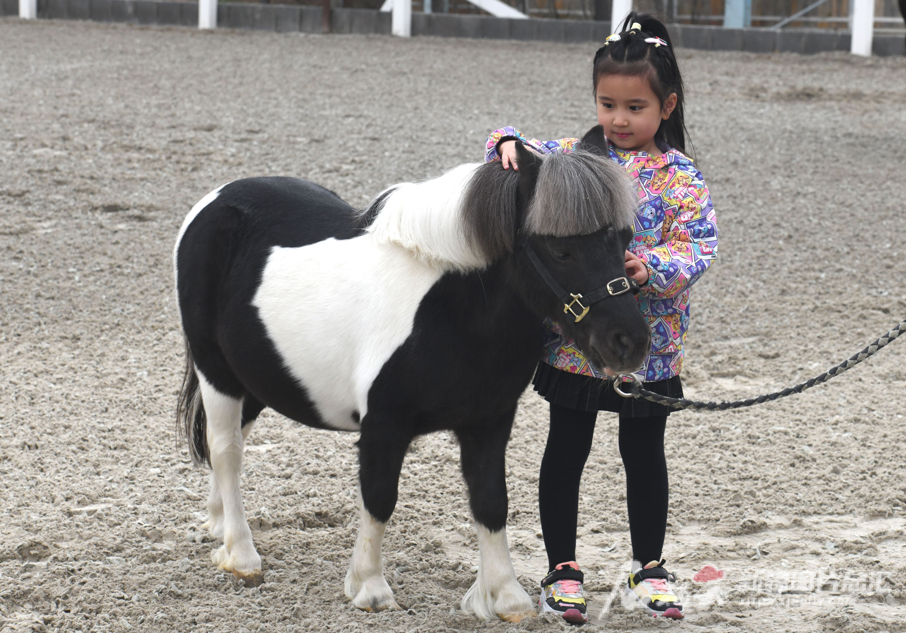 4月25日,在自治區(qū)體育局體育訓練二大隊馬術(shù)訓練場,小朋友在撫摸小矮馬。天山網(wǎng)-新疆日報記者 張新軍攝