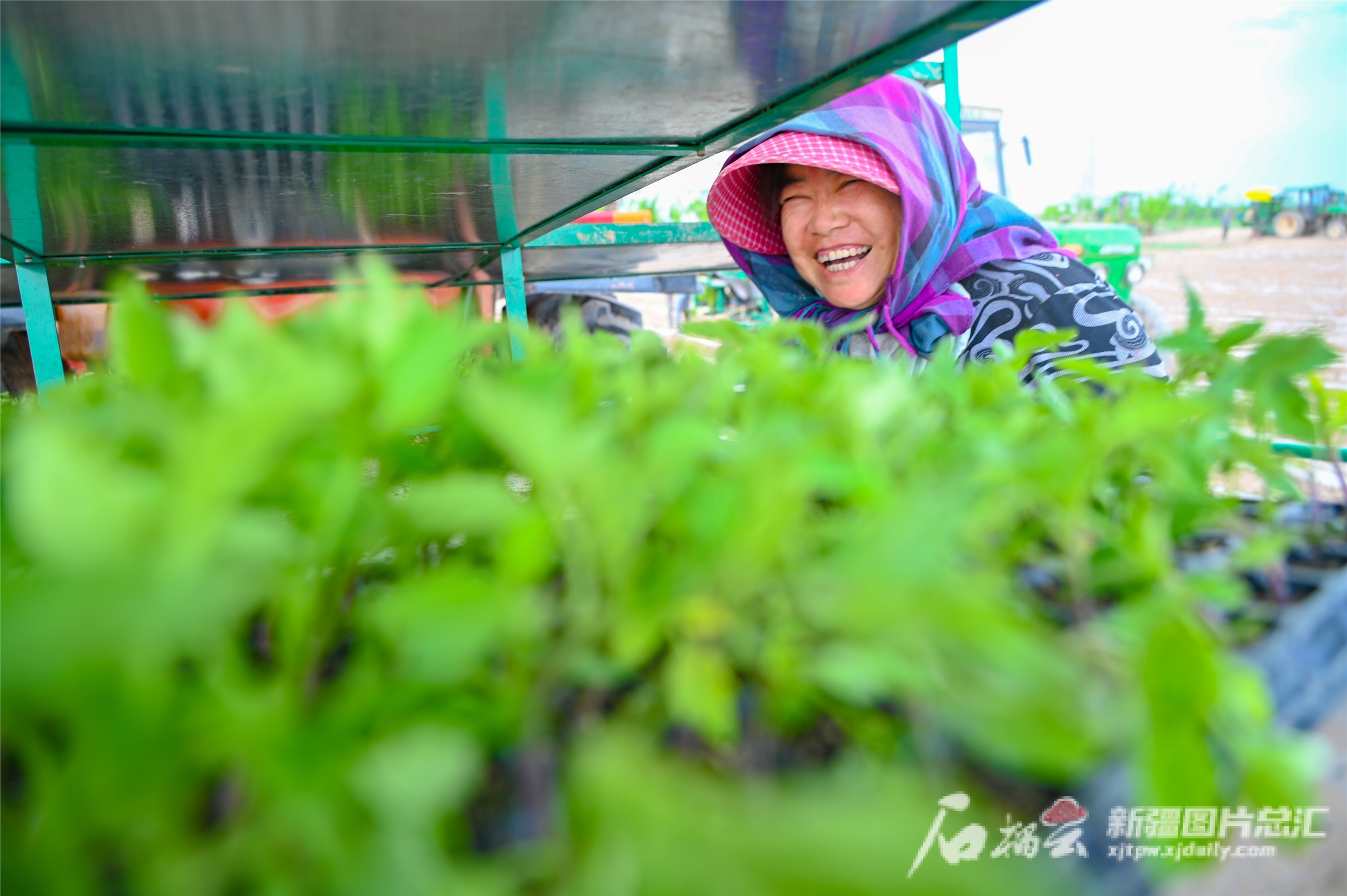 5月20日,呼圖壁縣五工臺(tái)鎮(zhèn)十九戶村,農(nóng)民使用番茄移栽機(jī)移栽番茄苗。今年,呼圖壁縣計(jì)劃種植番茄4萬(wàn)畝,目前番茄移栽工作已接近尾聲,當(dāng)?shù)胤逊N植戶搶抓農(nóng)時(shí)進(jìn)行番茄移栽工作。陶維明攝