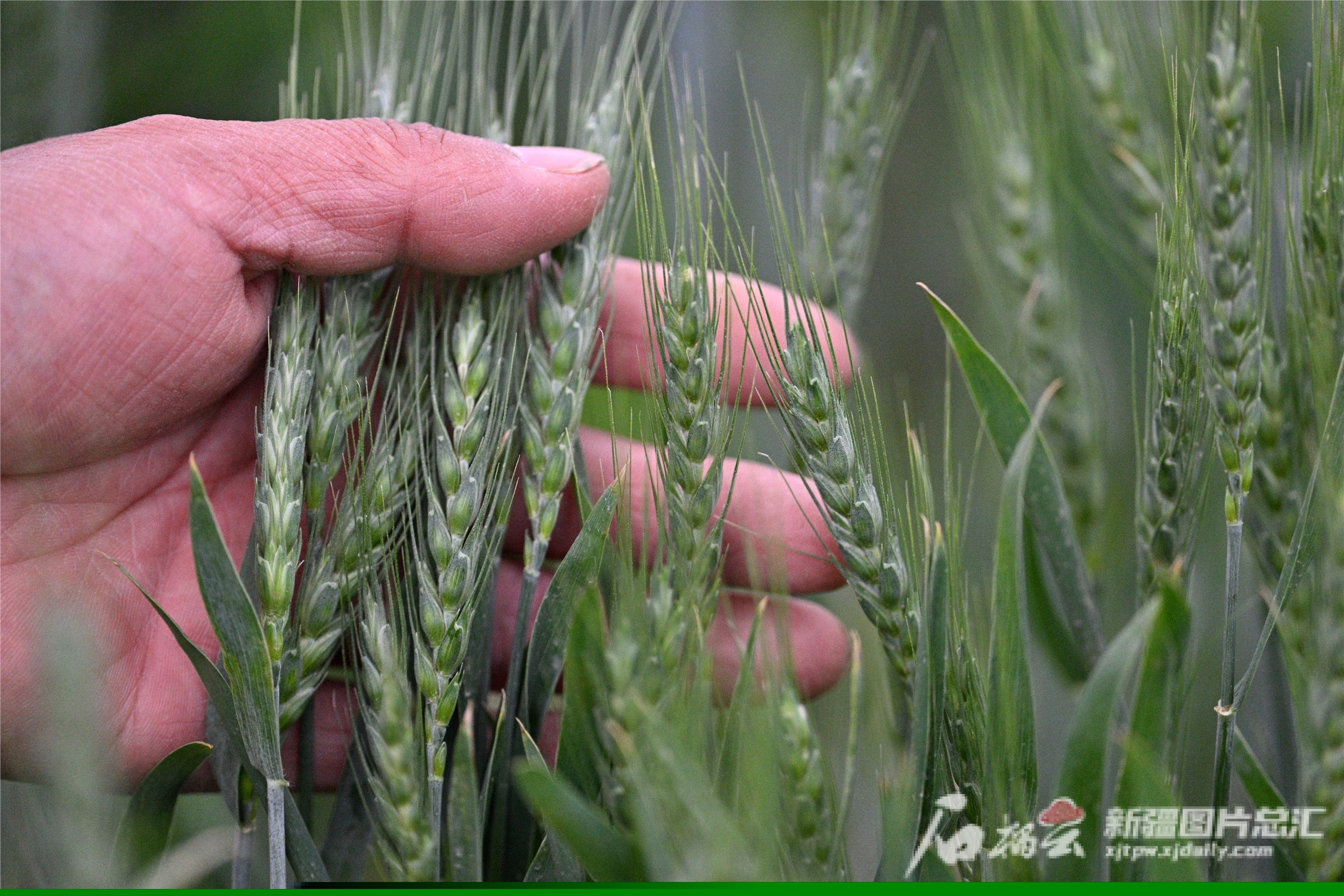 5月21日,庫(kù)爾勒市哈拉玉宮鄉(xiāng)巴格吉代村農(nóng)民在麥田里檢查麥苗長(zhǎng)勢(shì)。當(dāng)日是農(nóng)歷節(jié)氣中的“小滿”節(jié)氣,巴音郭楞蒙古自治州30余萬(wàn)畝春小麥進(jìn)入抽穗期,各縣市農(nóng)民搶抓農(nóng)時(shí)忙農(nóng)事,田間地頭一派繁忙景象。確·胡熱攝
