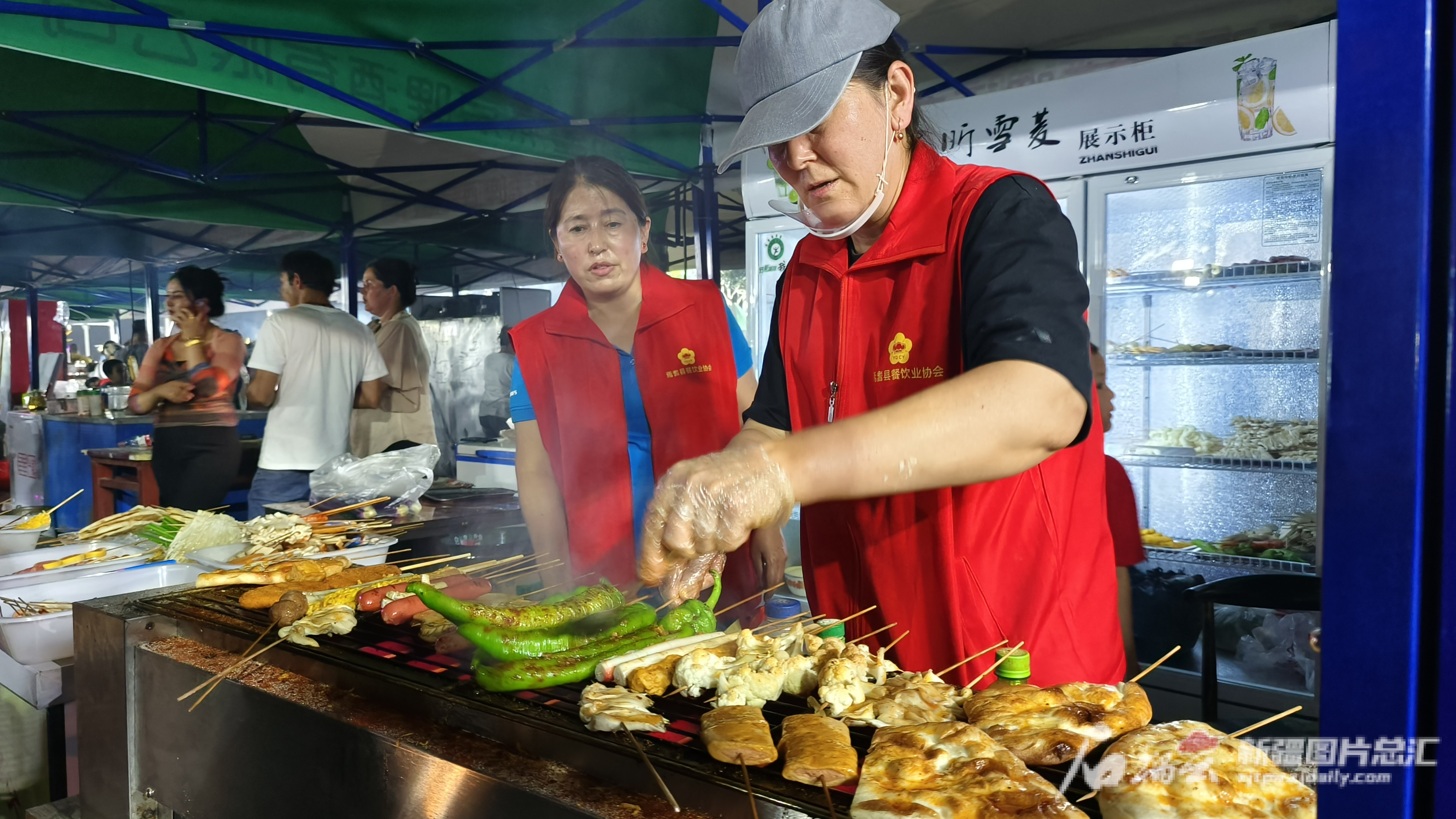 6月19日晚,焉耆回族自治縣紅酒燒烤節(jié)上忙碌的商戶。馬悅 攝