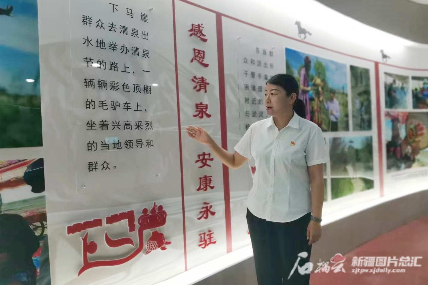 9月1日,在伊吾縣下馬崖鄉(xiāng)新時代文明實踐中心,肖靜在給參觀群眾講民族團(tuán)結(jié)故事。天山網(wǎng)-新疆日報記者 魏永貴攝