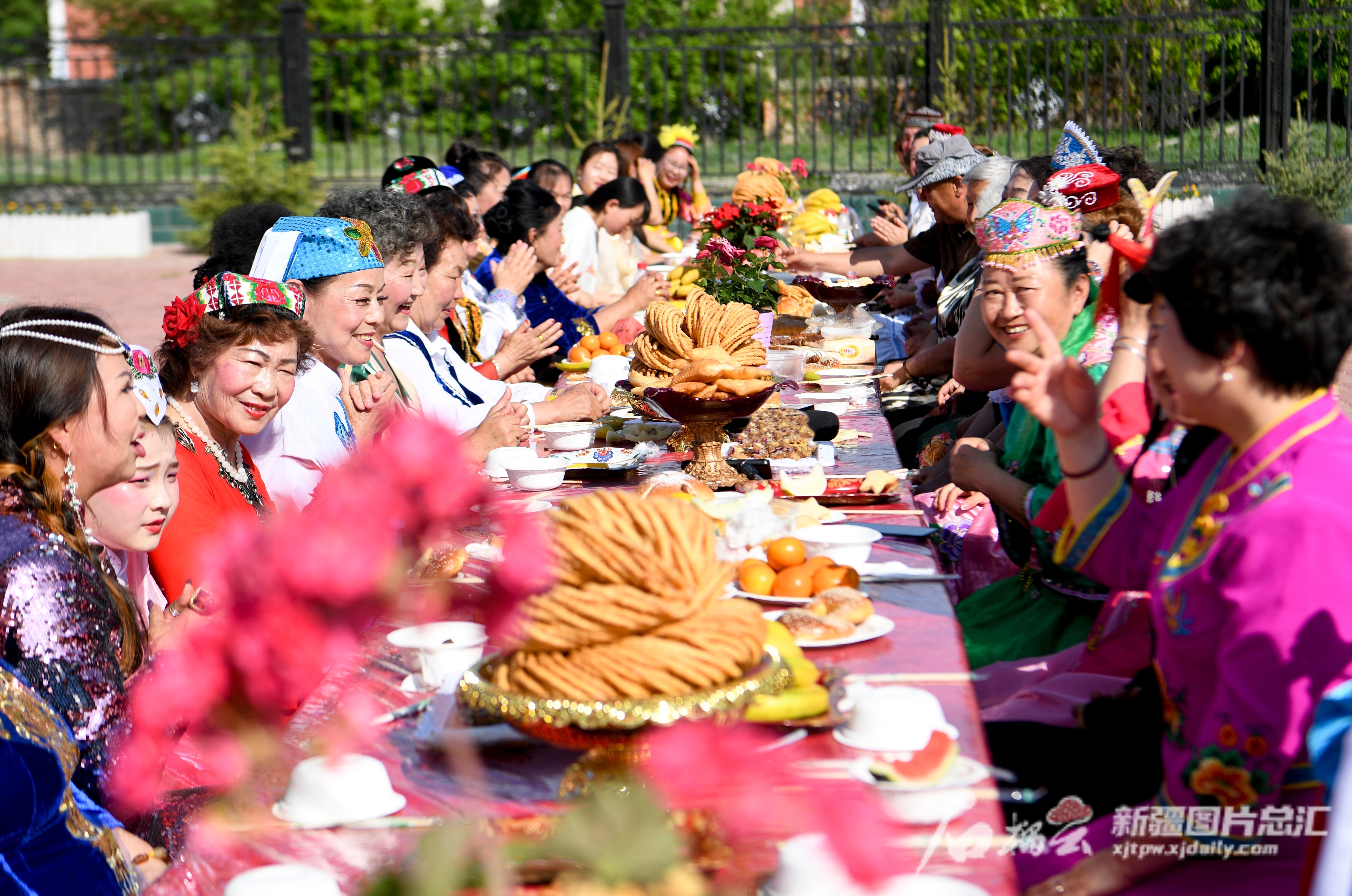 塔城市新城街道哈爾墩社區(qū)居民在鄰里節(jié)“百家宴”上品嘗美食(5月17日攝)。哈爾墩社區(qū)生活著14個(gè)民族的居民,各族群眾交往、交流、交融,民族團(tuán)結(jié)成為這里的金名片。 天山網(wǎng)-新疆日報(bào)記者湯永攝