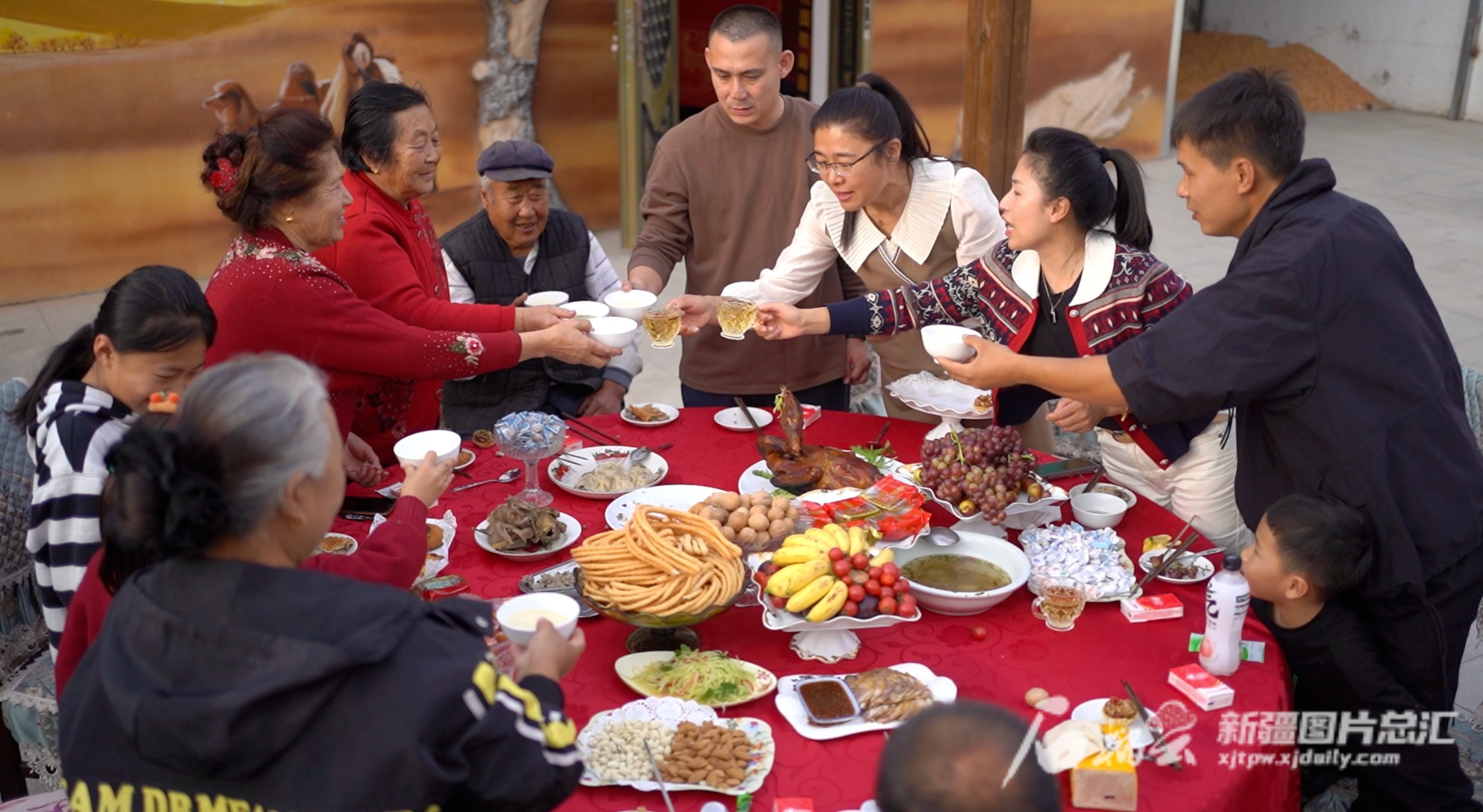 2023年9月29日,在額敏縣額敏鎮(zhèn)塔斯?fàn)柡4寰用耨R新華家,左鄰右舍相聚一堂慶中秋。天山網(wǎng)-新疆日報(bào)記者王昕 攝