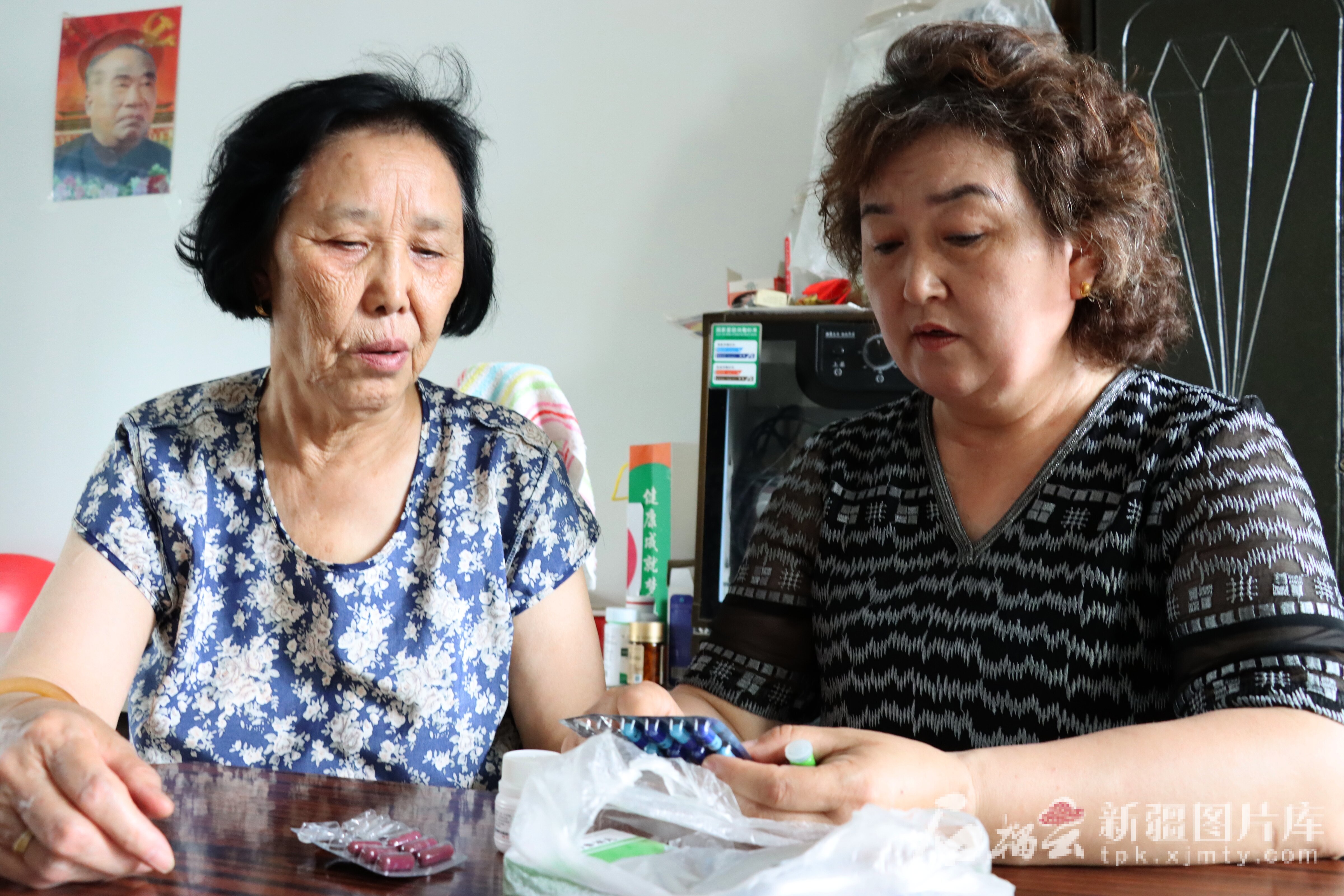 6月24日,巴哈義古麗·尼合買提(右)走訪社區(qū)獨居老人盧桂芝,了解老人生活需求。楊艷攝