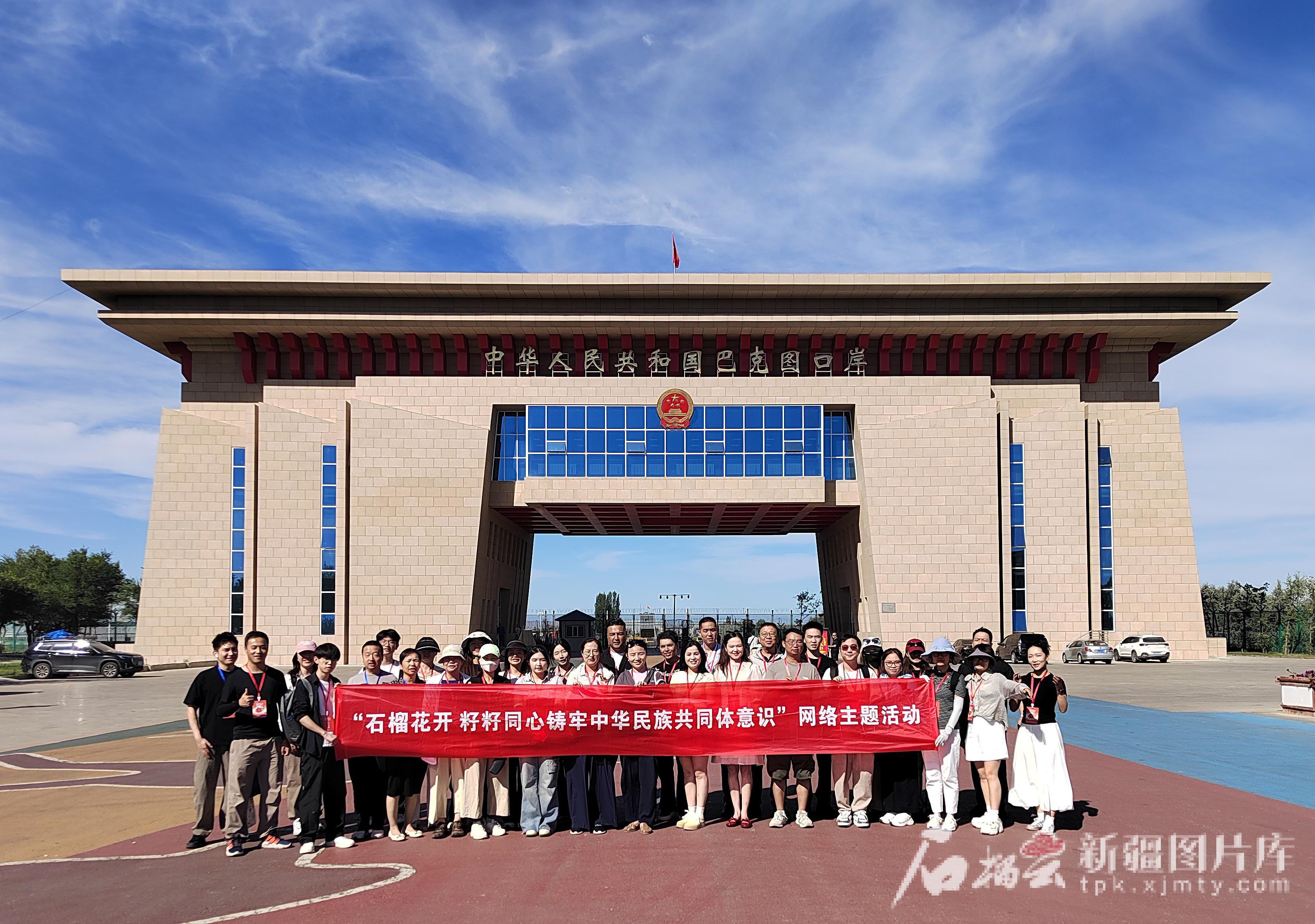 7月23日,“石榴花開(kāi) 籽籽同心鑄牢中華民族共同體意識(shí)”網(wǎng)絡(luò)主題活動(dòng)采訪團(tuán)在巴克圖口岸國(guó)門(mén)前合影。
