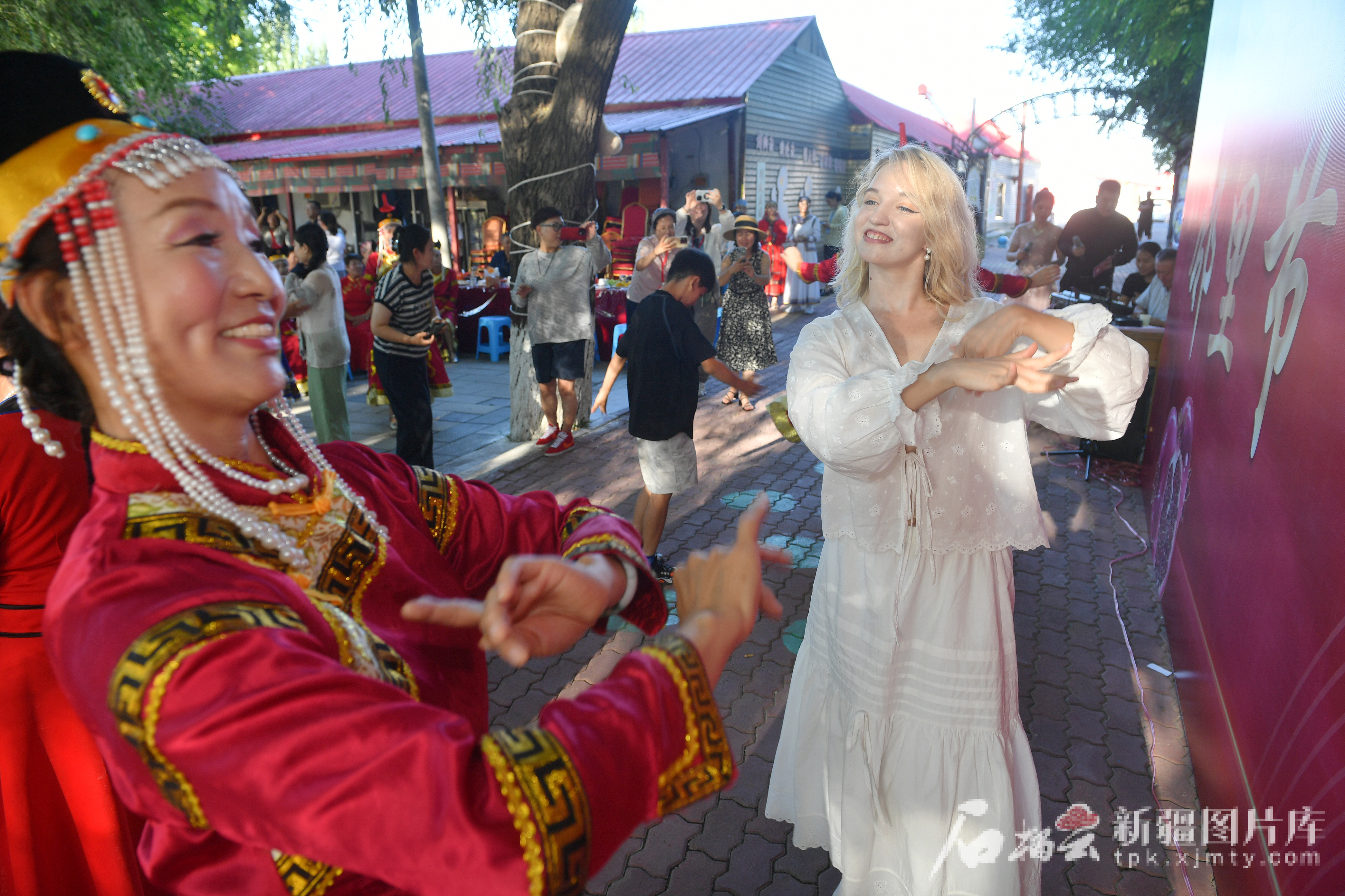 7月23日,俄羅斯籍網(wǎng)絡(luò)達(dá)人梅麗莎在塔城市新城街道哈爾墩社區(qū)參加鄰里節(jié)百家宴活動(dòng)。