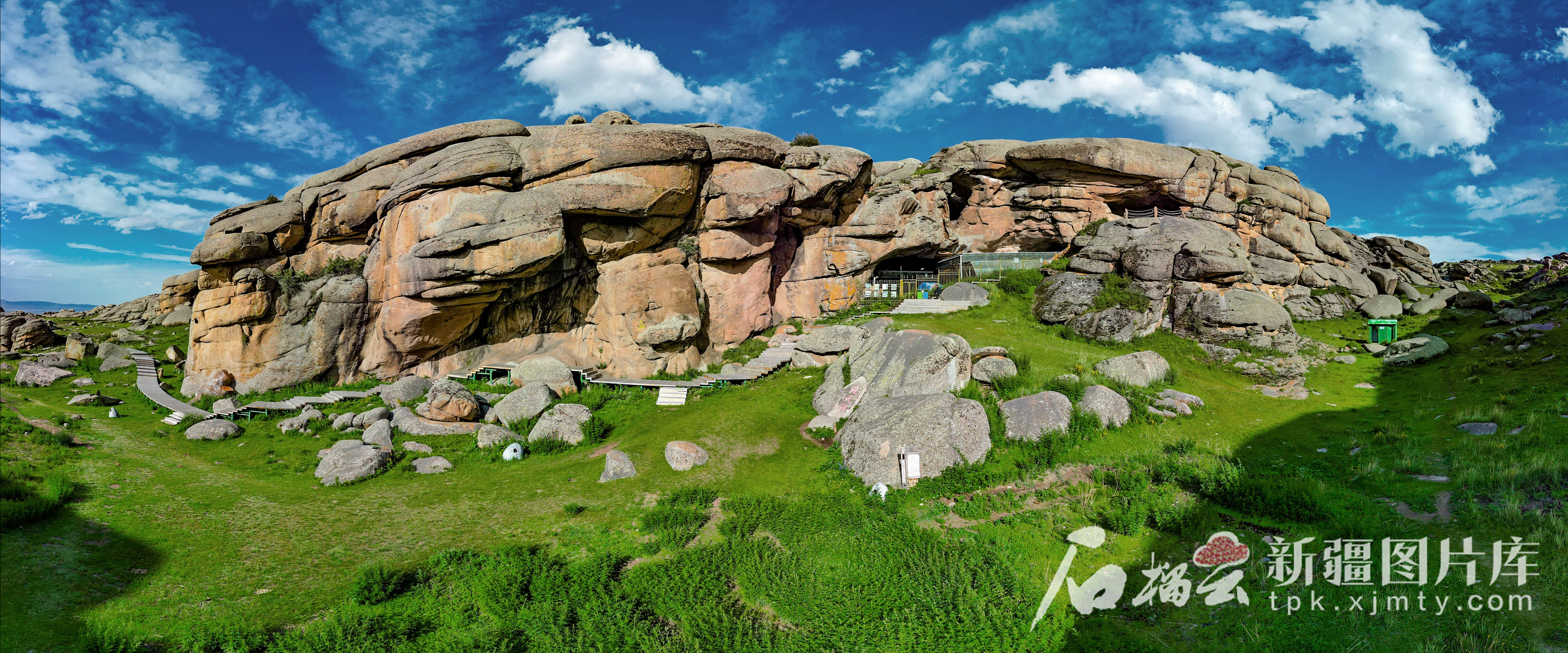 6月30日,在吉木乃縣托斯特鄉(xiāng)拍攝的草原石城景區(qū)通天洞遺址外景。