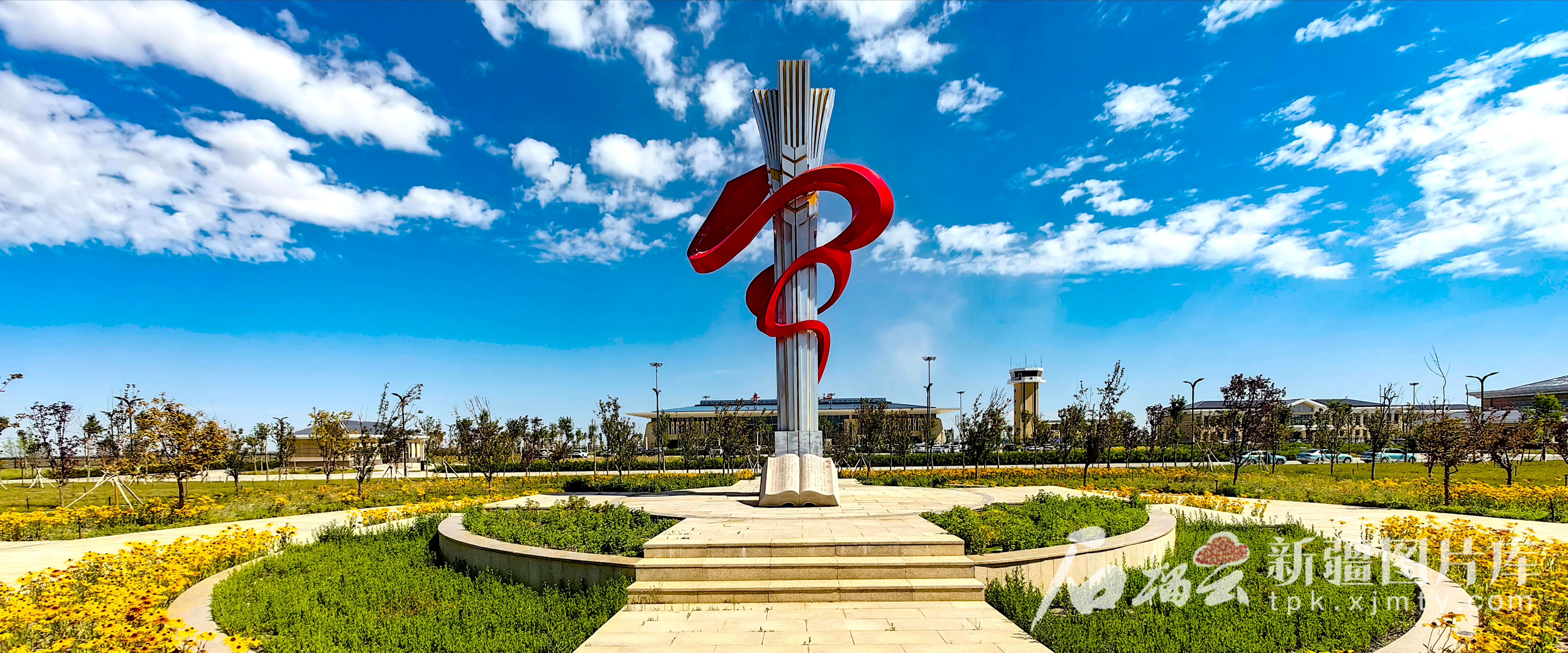 7月4日,在奇臺江布拉克機場拍攝的希望雕塑。