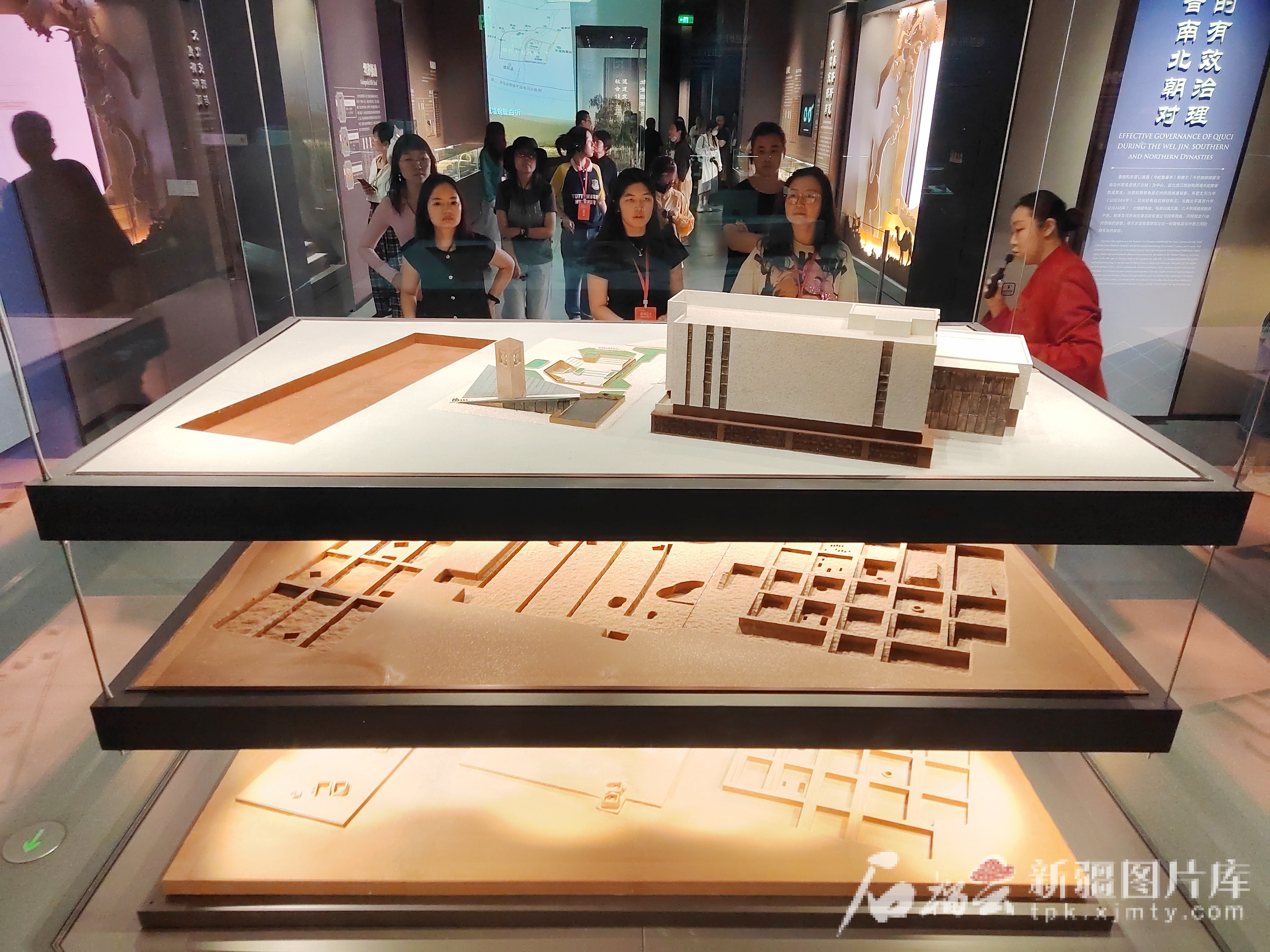 7月26日,采訪團(tuán)一行在龜茲博物館觀看龜茲魏晉古墓遺址博物館結(jié)構(gòu)模型。