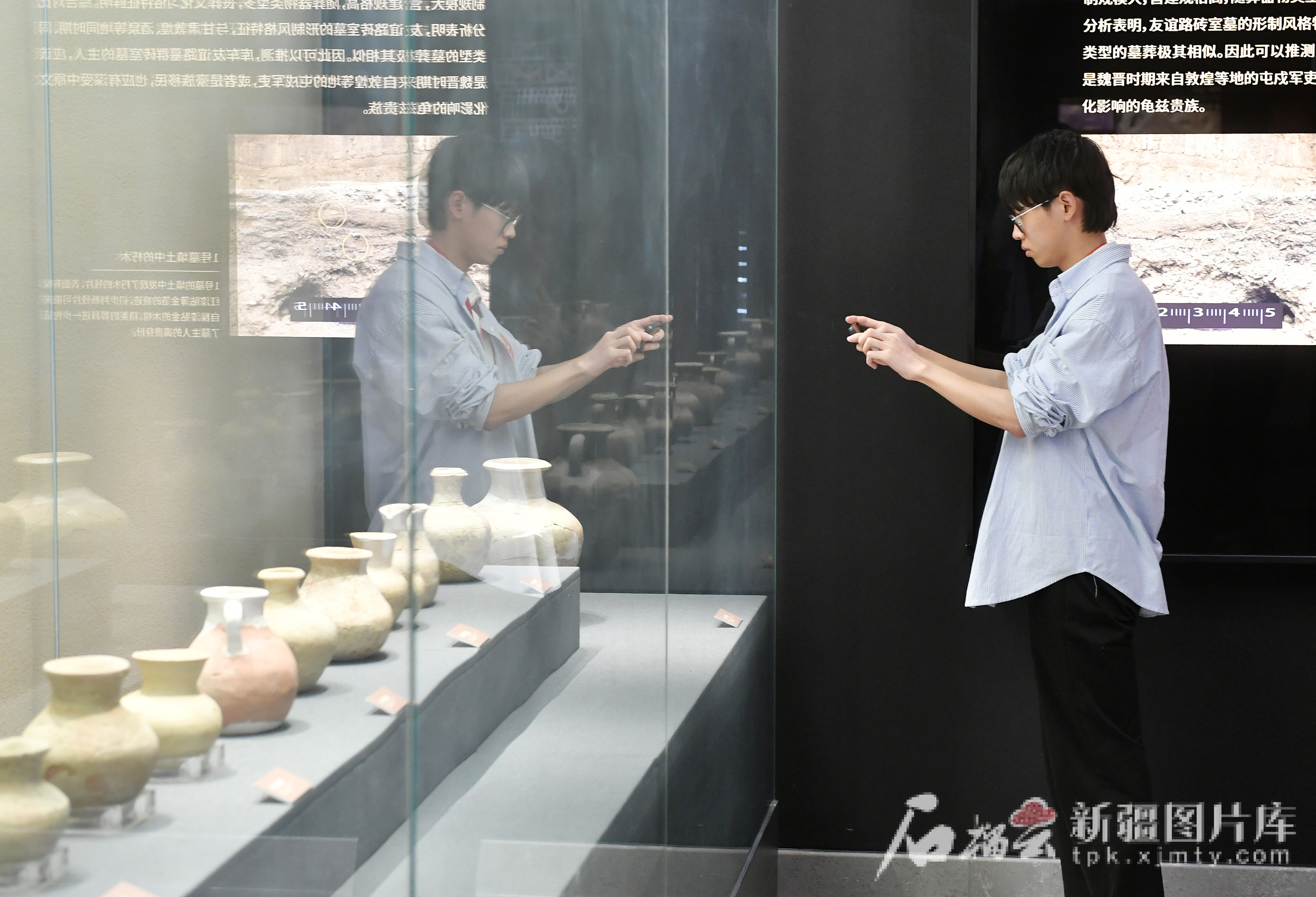 7月26日,采訪團(tuán)一行在龜茲魏晉古墓遺址博物館參觀。