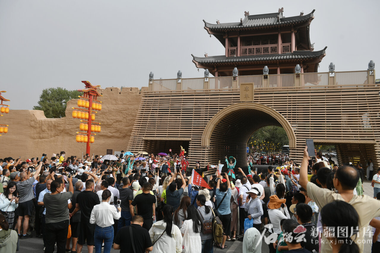7月27日,游客在庫(kù)車?yán)铣菂⒓娱_(kāi)城儀式。