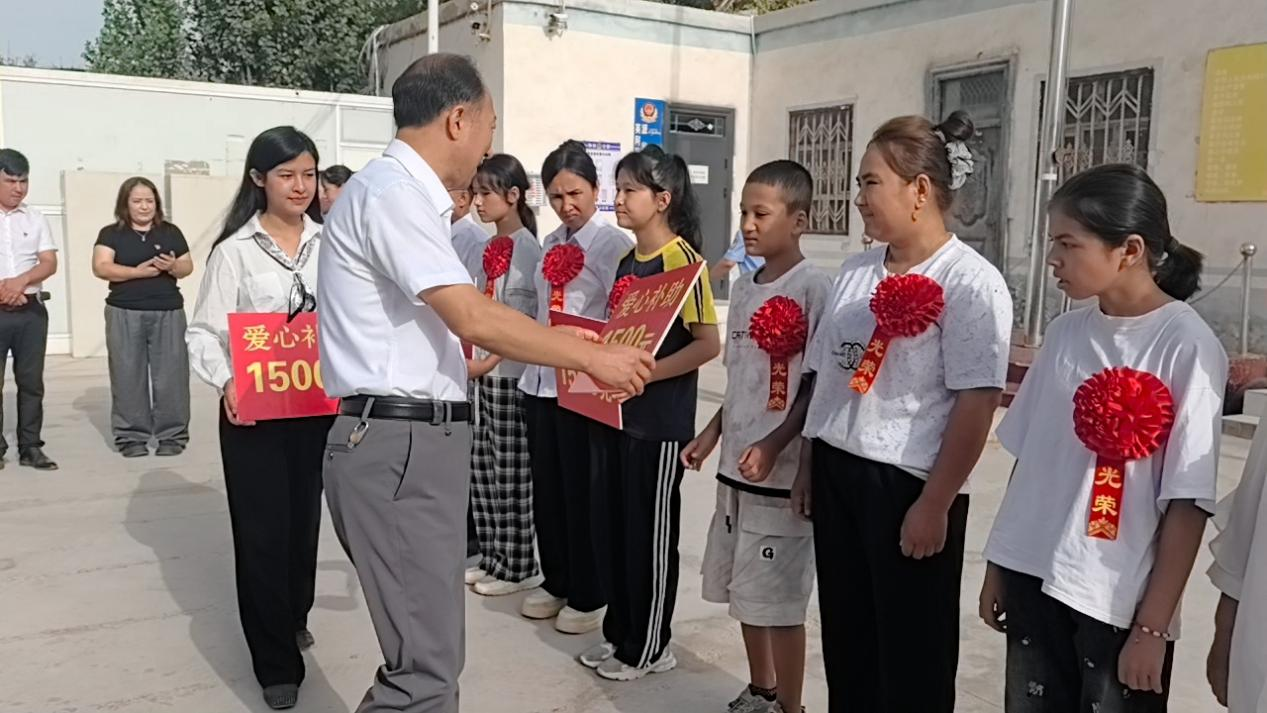 “工作隊(duì)這幾年一直幫著村里抓教育,不光給娃們發(fā)補(bǔ)助,還幫學(xué)校修了操場、捐了圖書?!睂W(xué)生家長買提阿布拉·買托合提看著女兒接過助學(xué)金,難掩激動(dòng),“現(xiàn)在村里家長都知道,讓娃讀書才有大出息?!?/p>