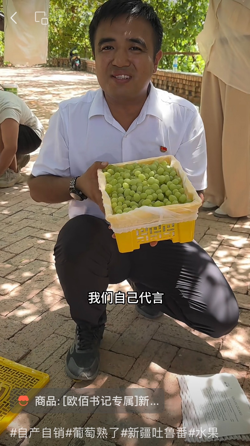 吐魯番市高昌區(qū)的一座葡萄園里,吐魯番市歐佰電子商務(wù)有限公司總經(jīng)理、“95后”歐佰都拉·吾買爾正通過視頻鏡頭向全國觀眾推薦家鄉(xiāng)的葡萄:“吐魯番的無核白葡萄,農(nóng)戶自產(chǎn)自銷,無籽無皮,甜蜜多汁,我們自己代言,朋友們支持一下我們嗎?”