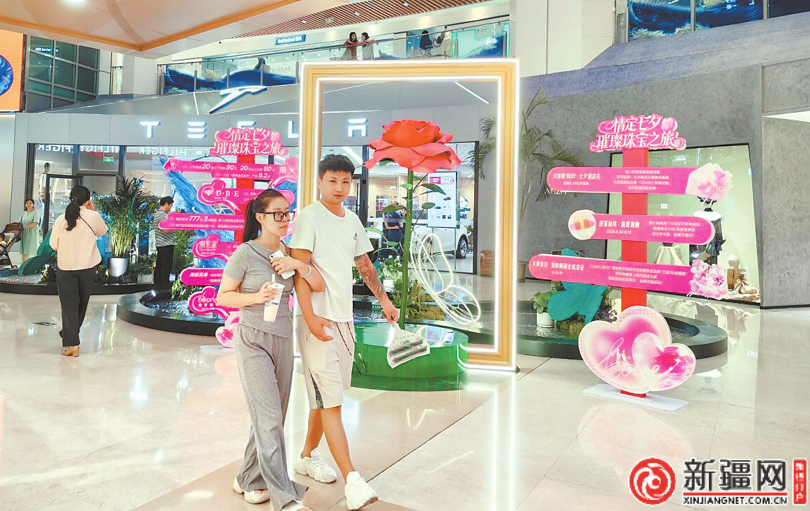 新疆網(wǎng)訊(記者郭玲)8月29日(農(nóng)歷七月初七)是我國的傳統(tǒng)節(jié)日七夕節(jié)。以“愛”為出發(fā)點(diǎn),烏魯木齊“浪漫經(jīng)濟(jì)”日趨升溫。鮮切花卉、黃金珠寶、化妝品、生活家電成為消費(fèi)者心頭好,疊加電商促銷、即時(shí)零售、新品上市等利好因素,共同推動(dòng)消費(fèi)市場(chǎng)繁榮活躍。