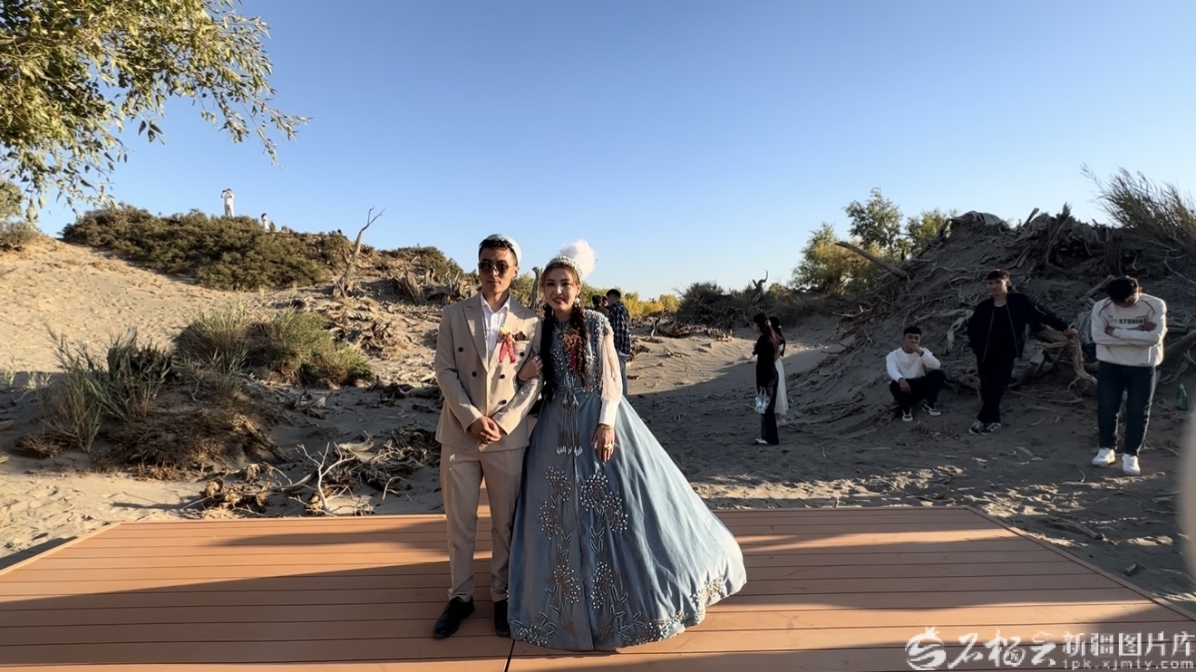 新人在伊吾胡楊景區(qū)拍照留念。阿曌攝