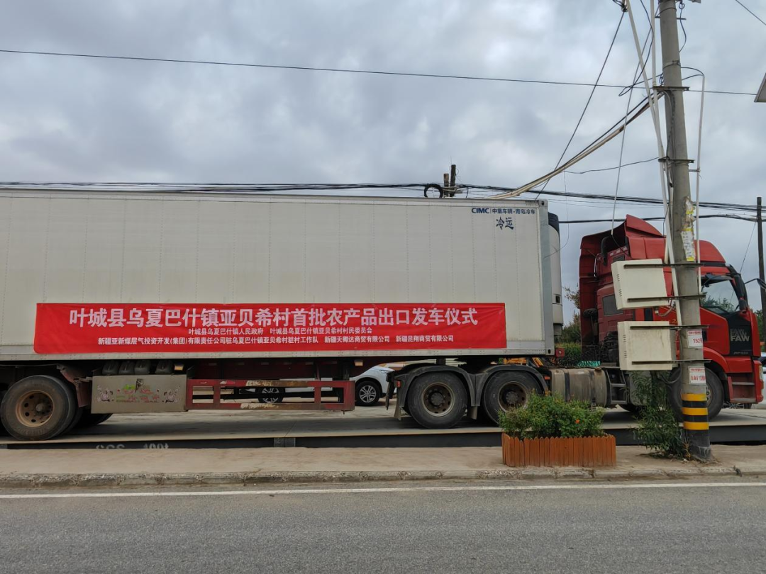 葉城縣烏夏巴什鎮(zhèn)亞貝希村舉行首批農產(chǎn)品出口發(fā)車儀式。張嵩 攝