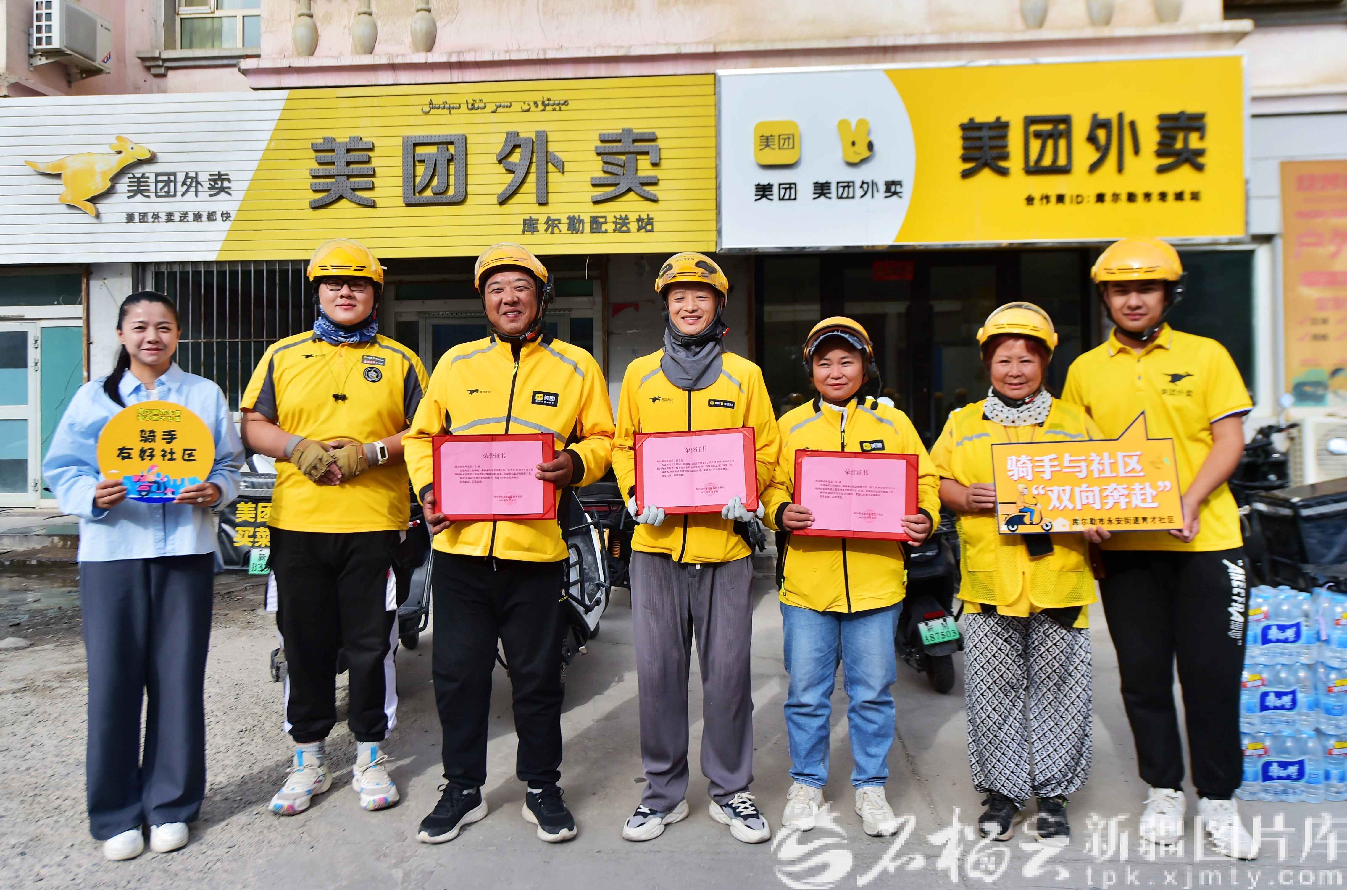 9月4日,庫爾勒市永安街道育才社區(qū)表現(xiàn)突出的外賣騎手受到社區(qū)表彰獎(jiǎng)勵(lì)。天山網(wǎng)-新疆日報(bào)訊記者 王立華攝