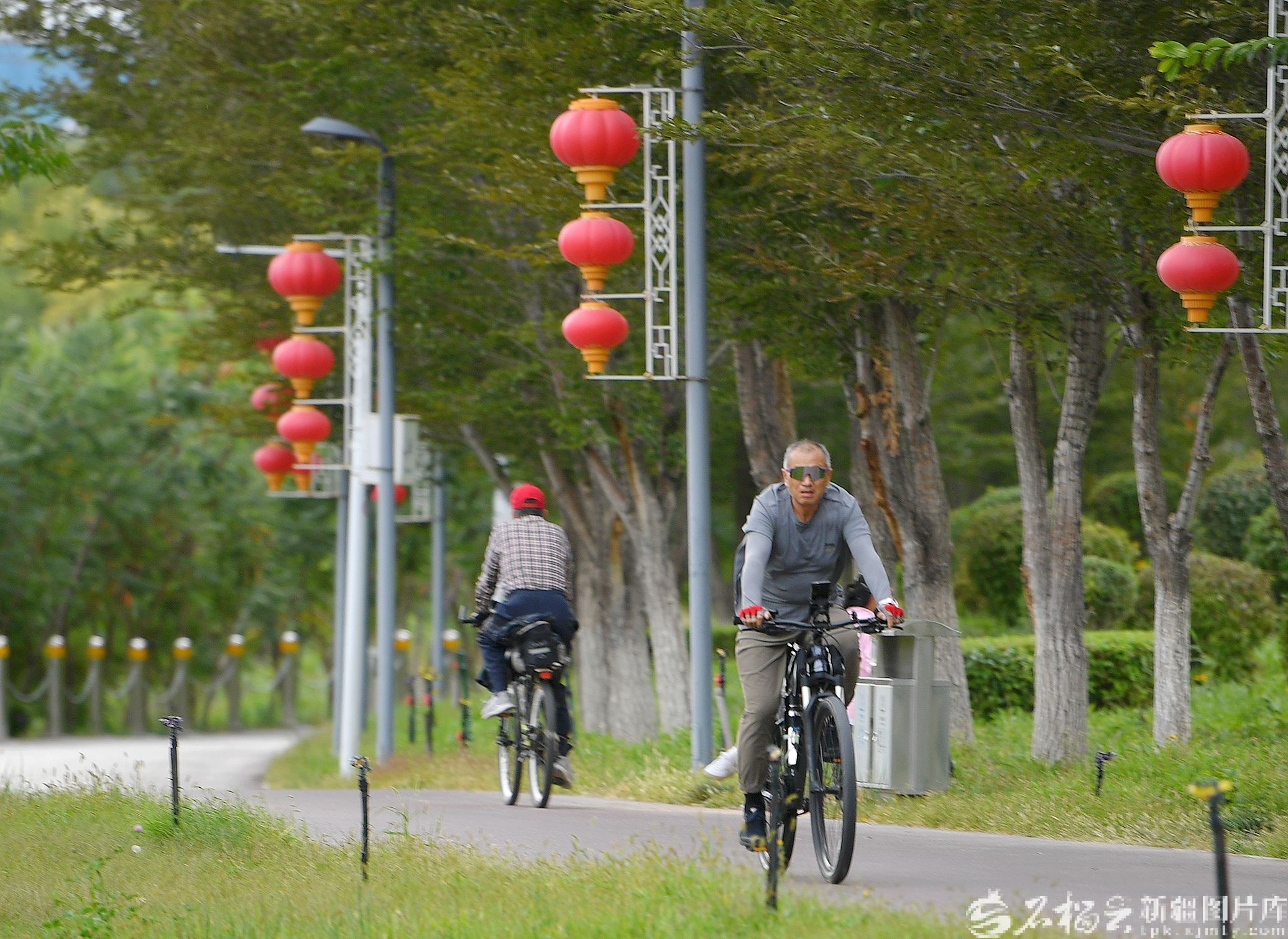 9月10日,市民在庭州生態(tài)綠谷騎行。