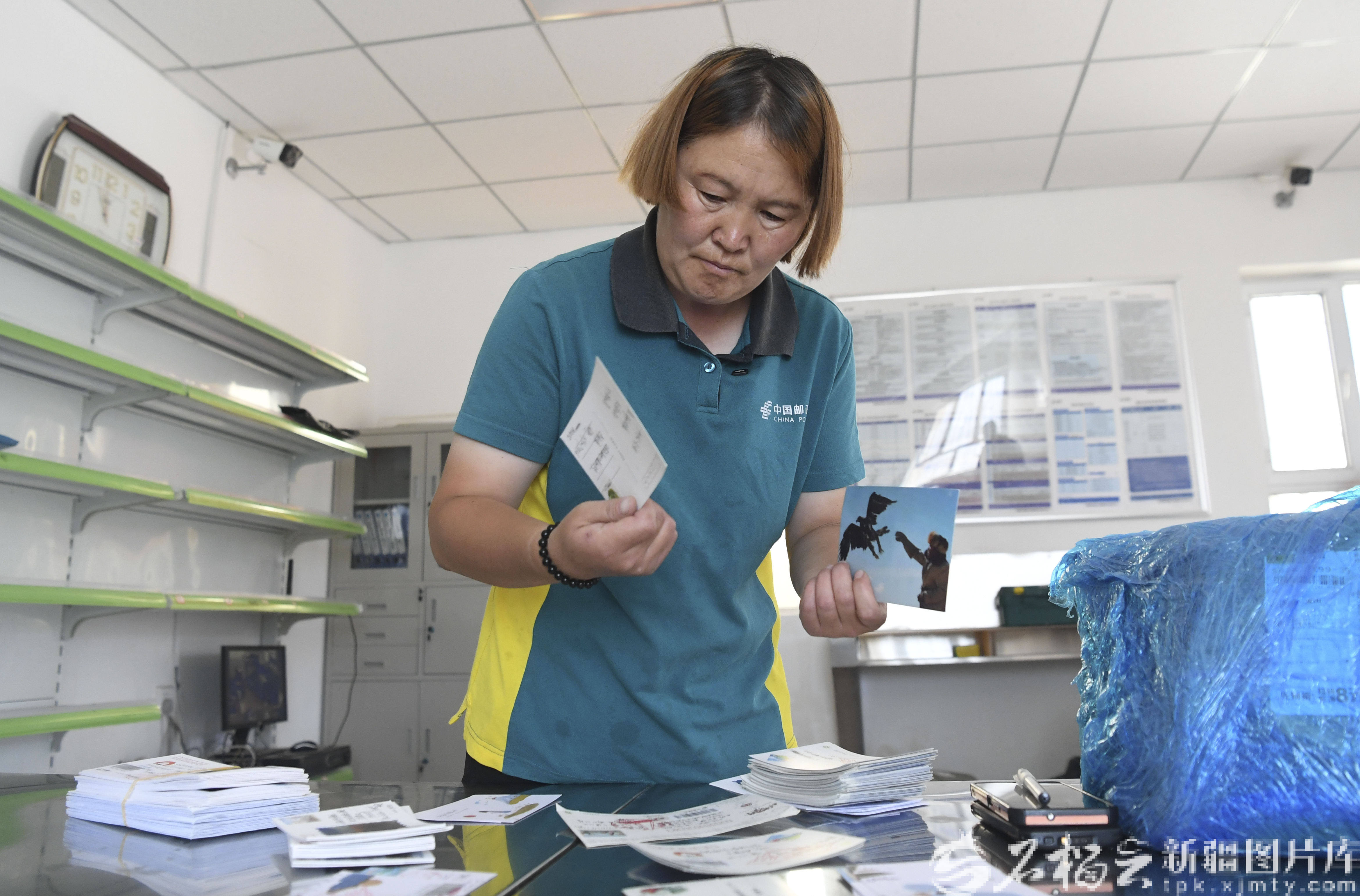 9月13日,伊熱斯比·圖爾迪馬買提在分揀明信片。