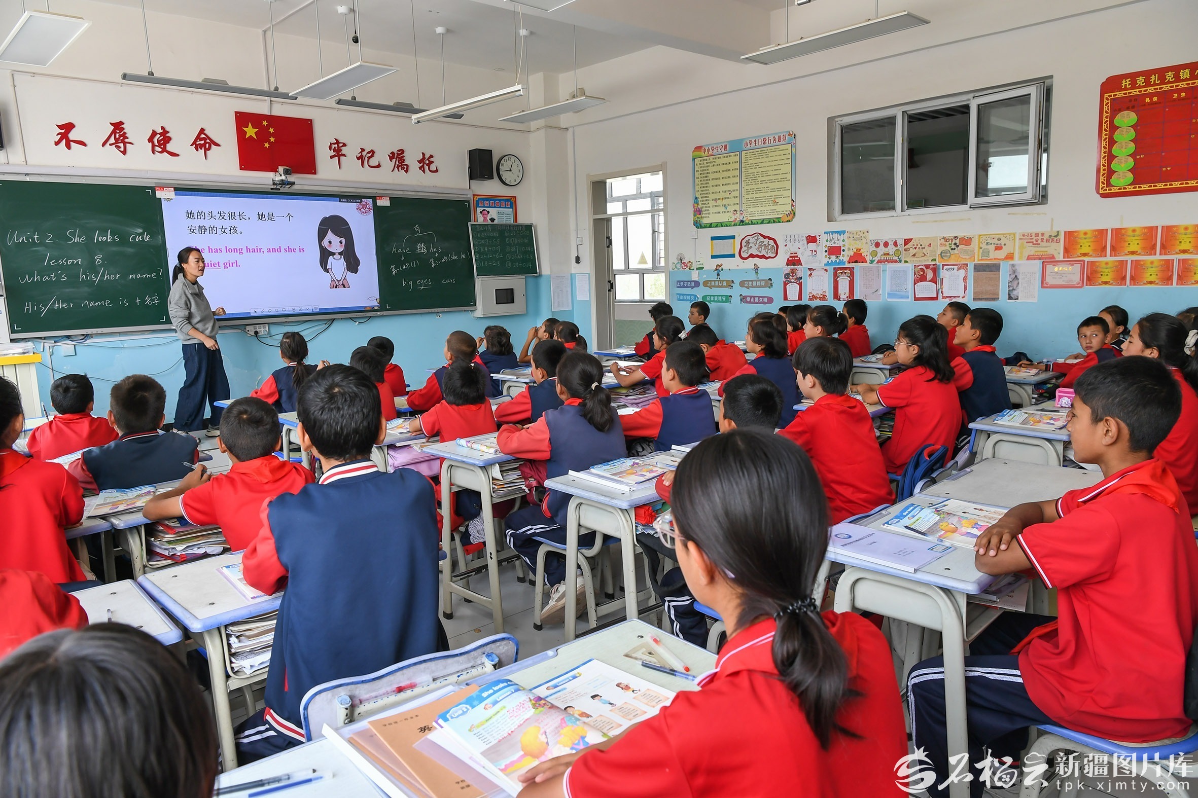 9月19日,疏附縣托克扎克鎮(zhèn)中心小學(xué)學(xué)生在寬敞明亮的教室上英語(yǔ)課。