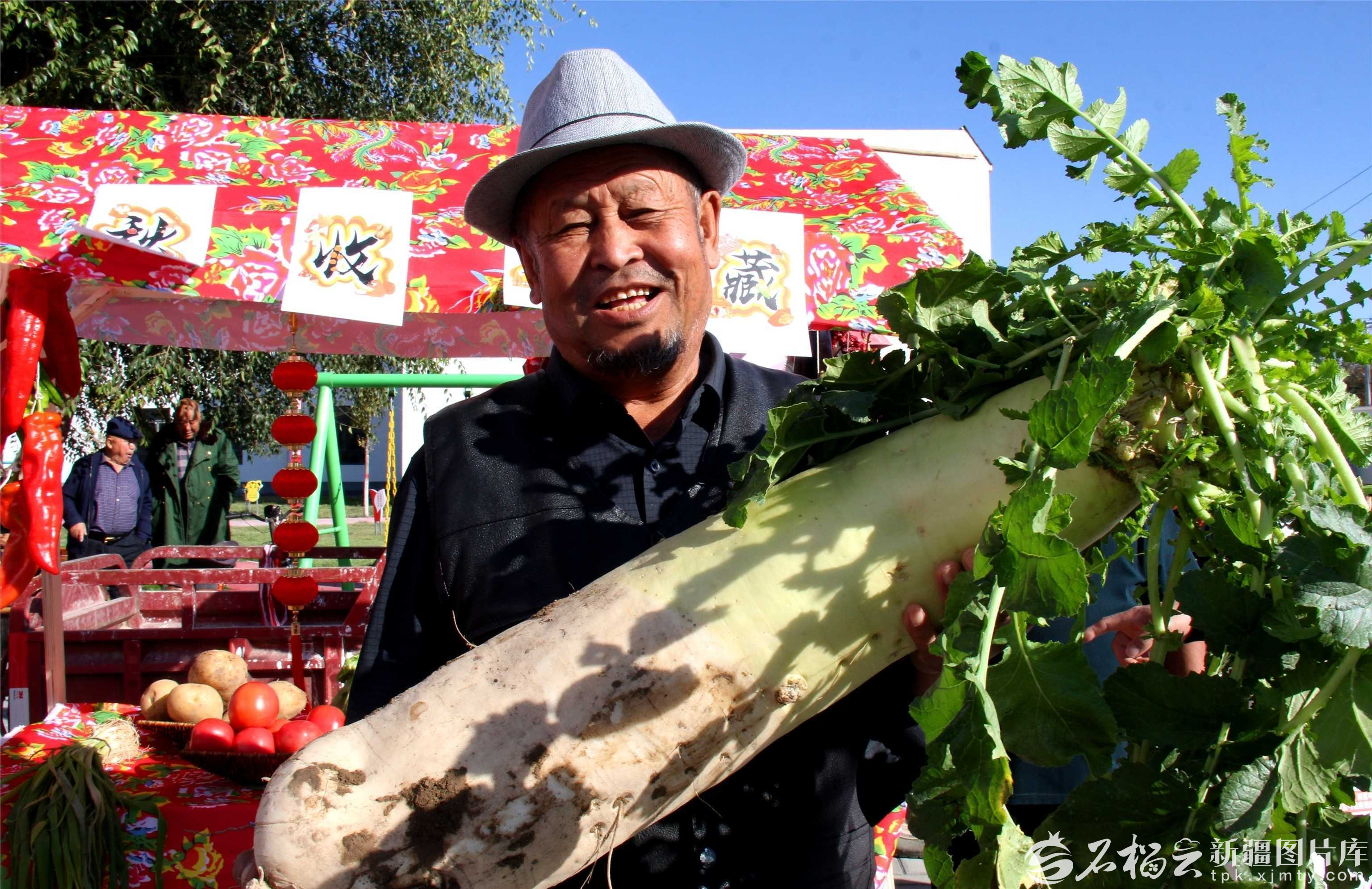 9月22日,裕民縣吉也克鎮(zhèn)農(nóng)民在農(nóng)產(chǎn)品展銷活動(dòng)現(xiàn)場展示自家種植的特大青蘿卜。楊化光攝