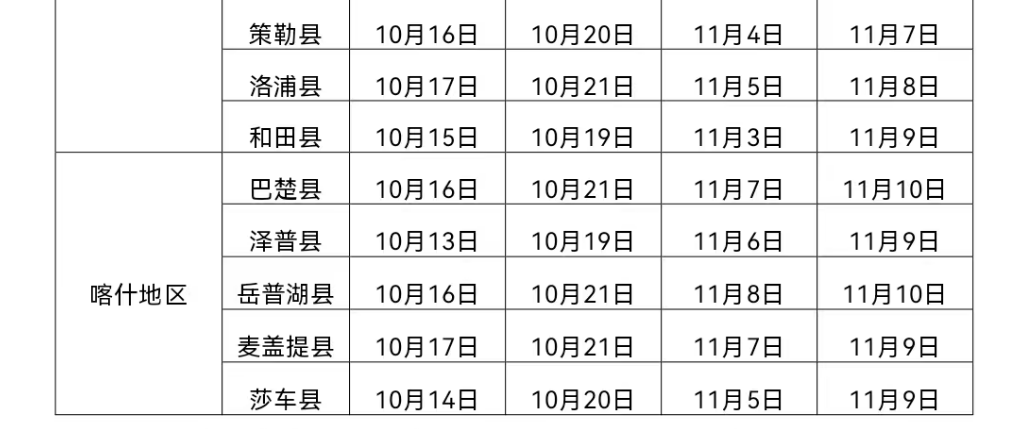 2025年南疆、東疆胡楊林觀賞期預(yù)測(cè)表。圖/新疆氣候中心提供
