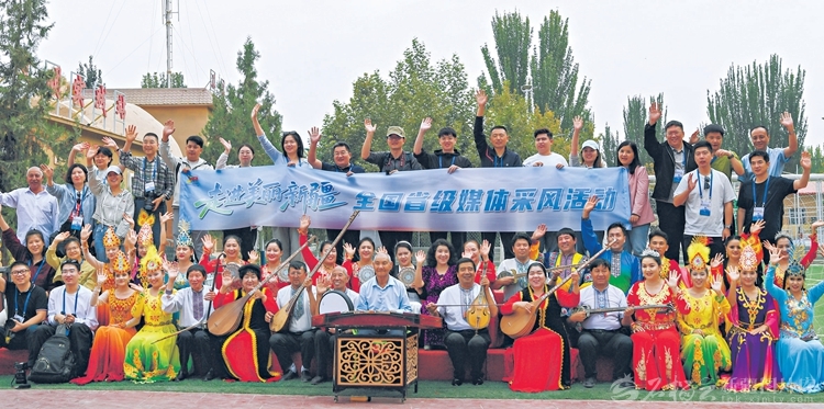 9月19日,“走進(jìn)美麗新疆”全國省級媒體采風(fēng)活動采訪團(tuán)在英吉沙縣土陶村和村民合影留念。天山網(wǎng)-新疆日報記者約提克爾·尼加提攝