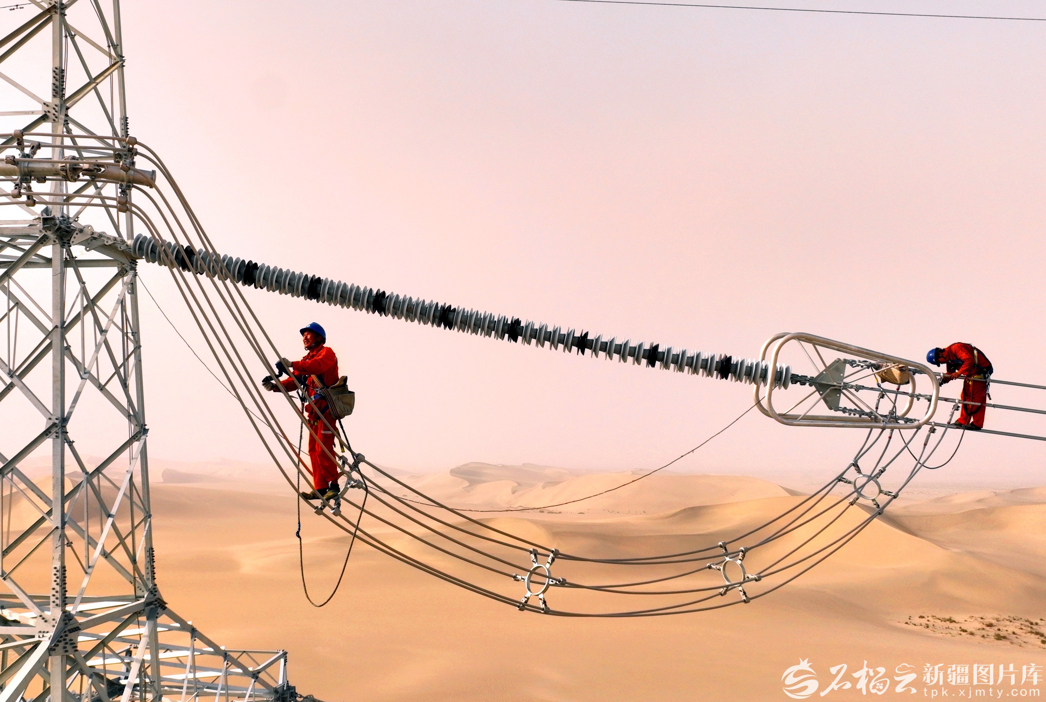 10月2日,國網(wǎng)新疆電力有限公司建設(shè)分公司建管的民豐—且末750千伏輸電線路工程建設(shè)現(xiàn)場,公司員工對電力線路進行消缺作業(yè),為工程投運做準(zhǔn)備。 馬元攝