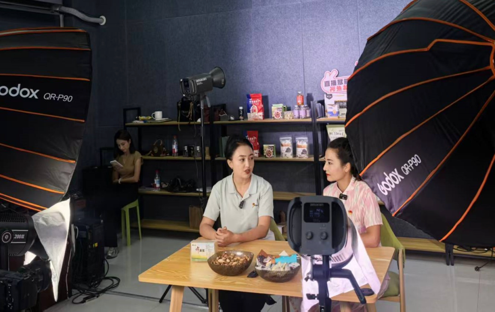 電商主播在直播間熱情吆喝莎車優(yōu)質農產品