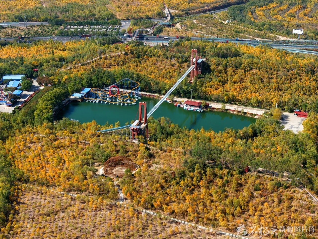庫爾勒市龍山公園秋景(10月10日攝)。進(jìn)入寒露節(jié)氣,該公園大片胡楊被染成金黃,猶如一幅斑斕畫卷。確·胡熱攝
