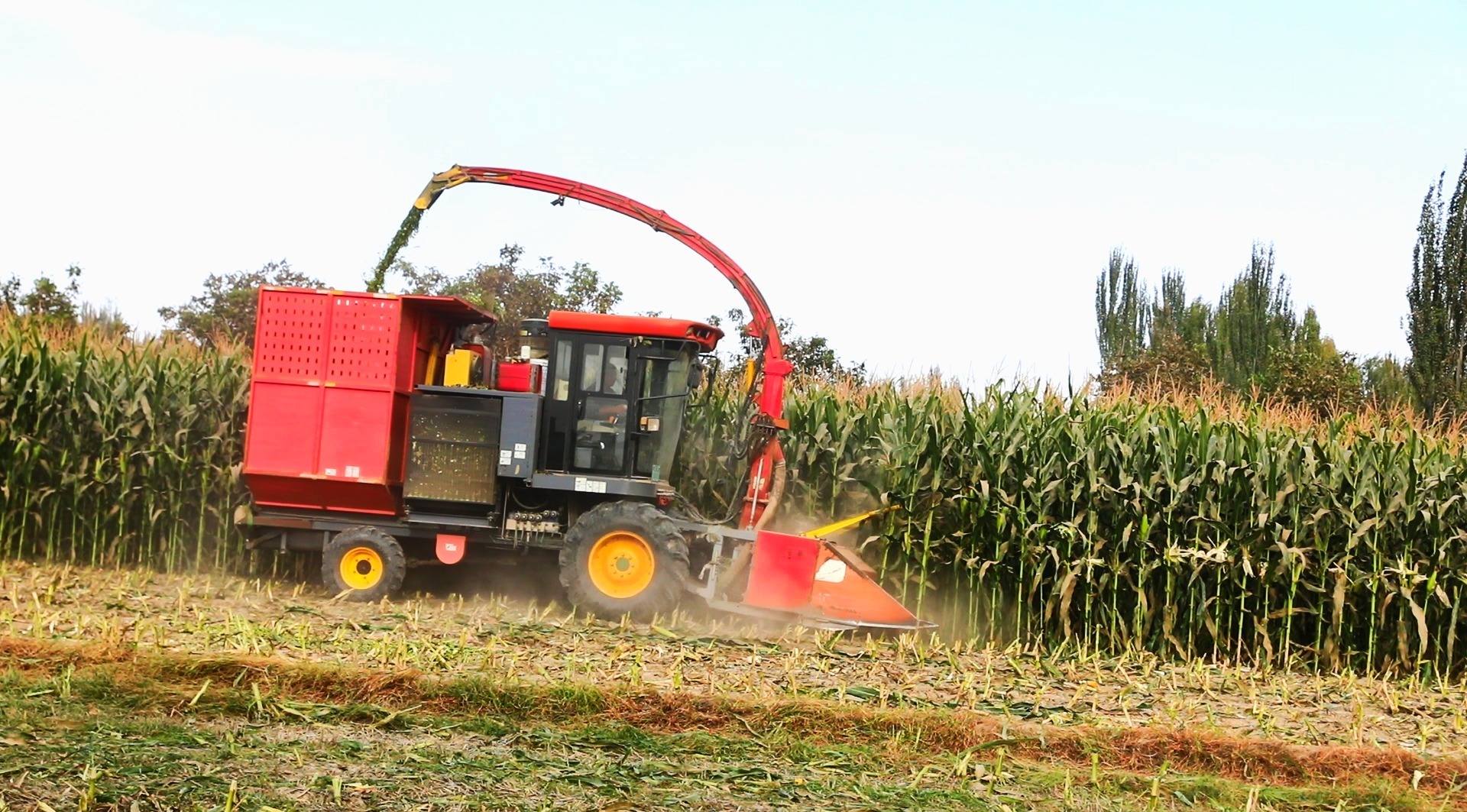 大型青貯收割機(jī)在收割玉米。伊帕爾古麗 攝