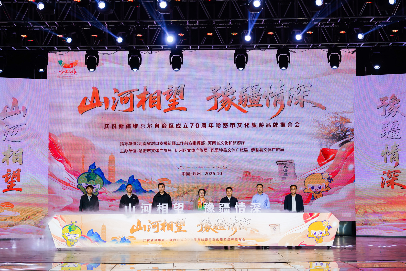天山網(wǎng)-新疆日?qǐng)?bào)訊(記者王晶晶報(bào)道)10月14日,“山河相望 豫疆情深”哈密文旅赴豫推廣活動(dòng)在河南藝術(shù)中心啟幕。本次活動(dòng)在河南省援疆前方指揮部及河南省文化和旅游廳的指導(dǎo)下,由哈密市文化體育廣播電視和旅游局及所屬區(qū)(縣)文化體育廣播電視和旅游局聯(lián)合主辦,以慶祝自治區(qū)成立70周年為契機(jī),向中原市場(chǎng)全方位推介哈密文旅資源,強(qiáng)力吸引游客,共拓合作新局。
