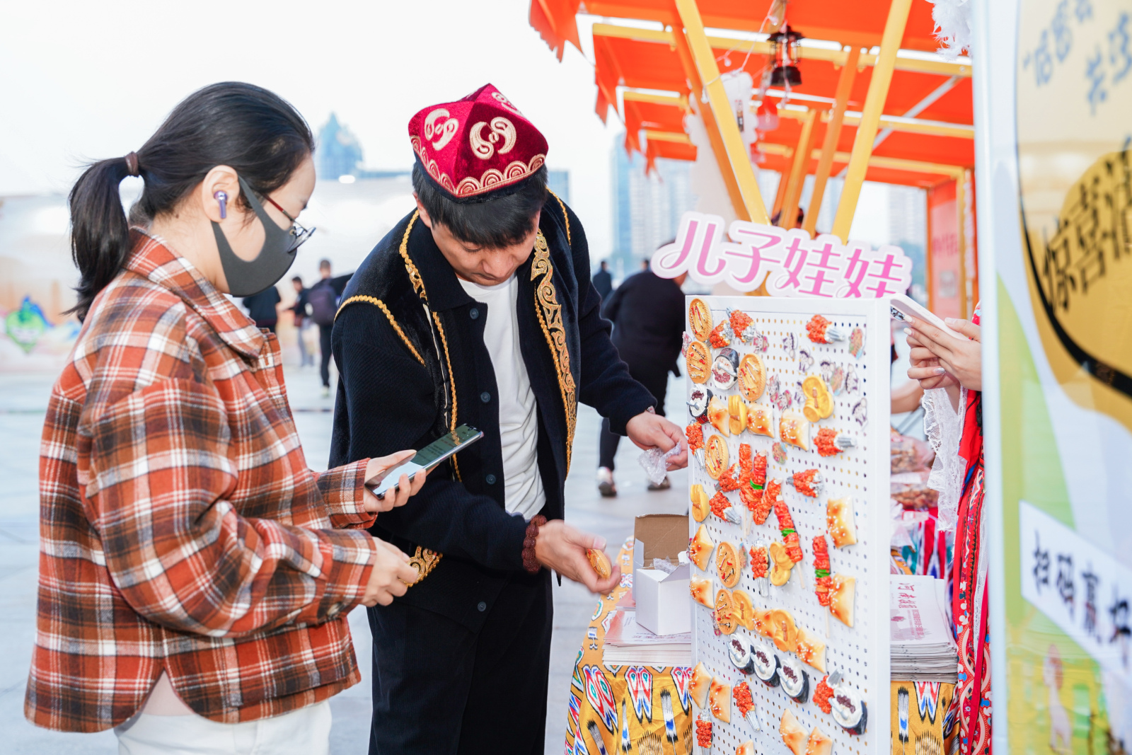 特色食品品嘗區(qū)同樣人氣頗旺,市民試吃著來自哈密的奶片、葡萄干、牛肉干等特產(chǎn),對(duì)口味贊不絕口。在聽過哈密的介紹后,許多市民現(xiàn)場(chǎng)選購(gòu)了哈密大棗、巴旦木等多種產(chǎn)品。